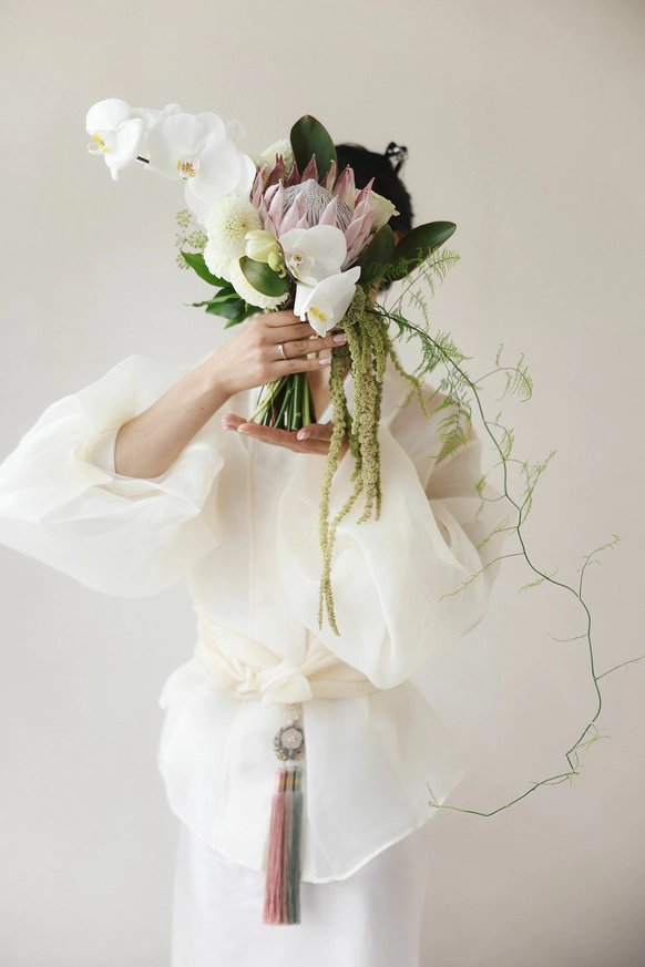 утро в корейском стиле, зонтики, веера и национальные инструменты.