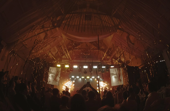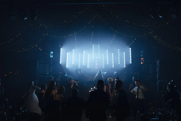 120 гостей, церемония и банкет с 3 звездными хедлайнерами.