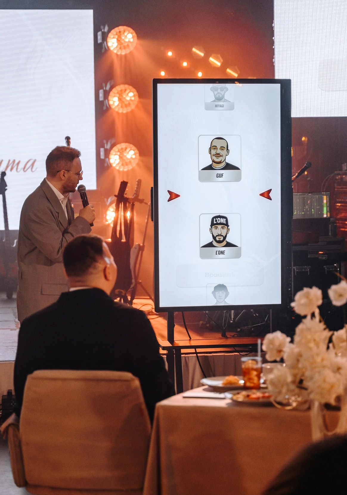 Ход вечера определял рандомайзер, складываясь в фееричный сценарий: церемония, игра ЧГК, комик Сергей Орлов, Баста и рейв под Нейромонаха Феофана.