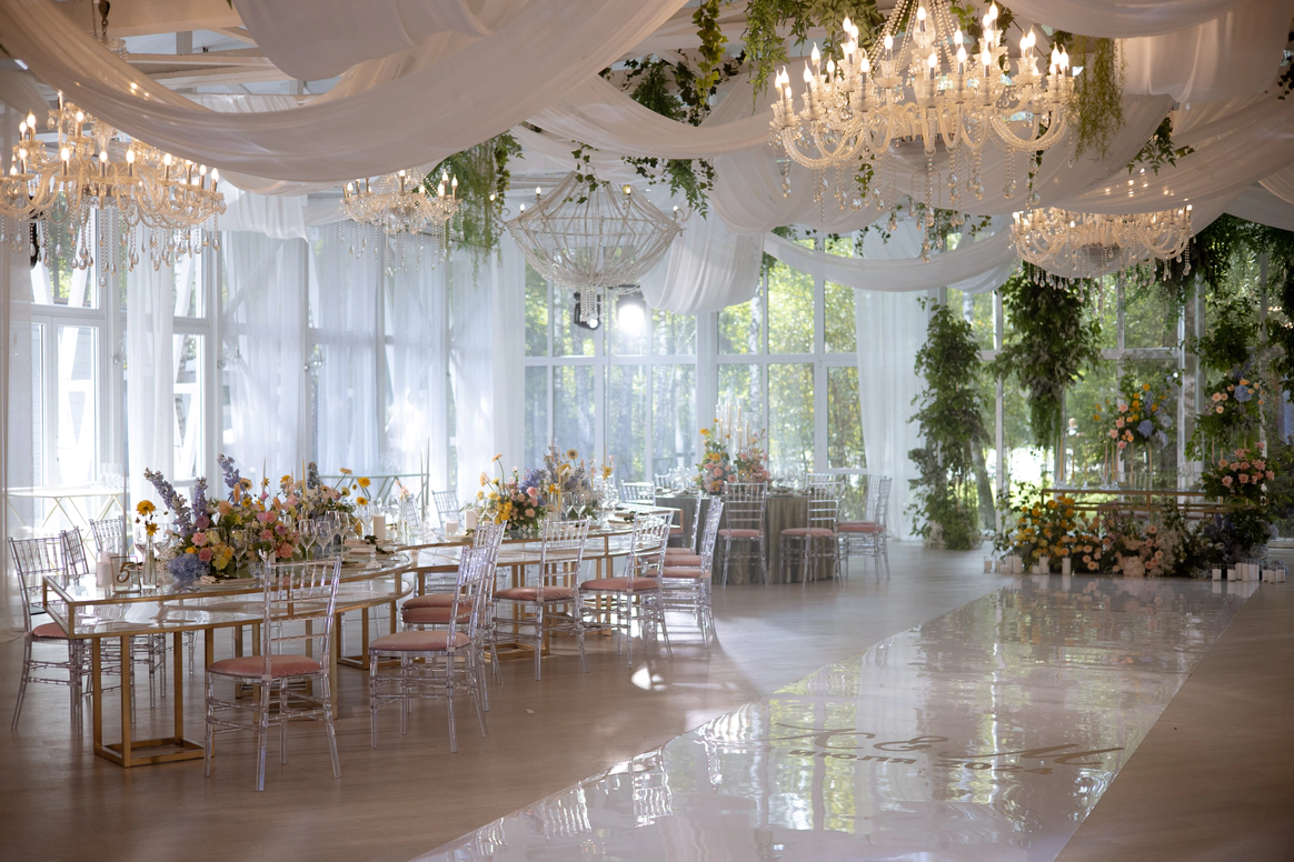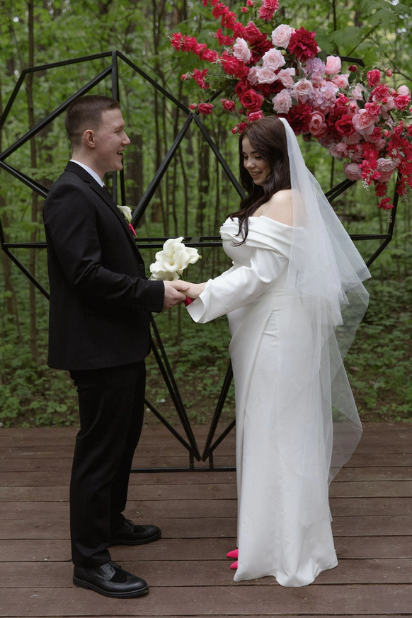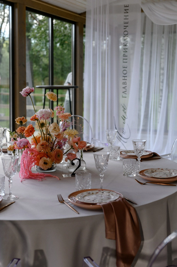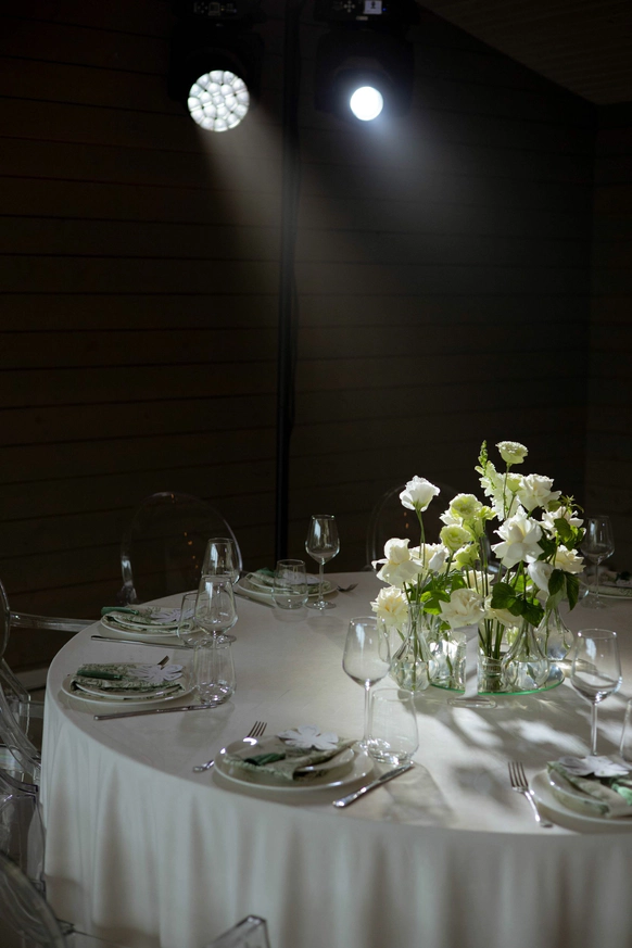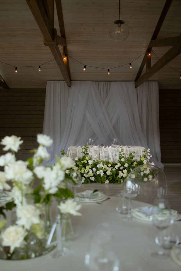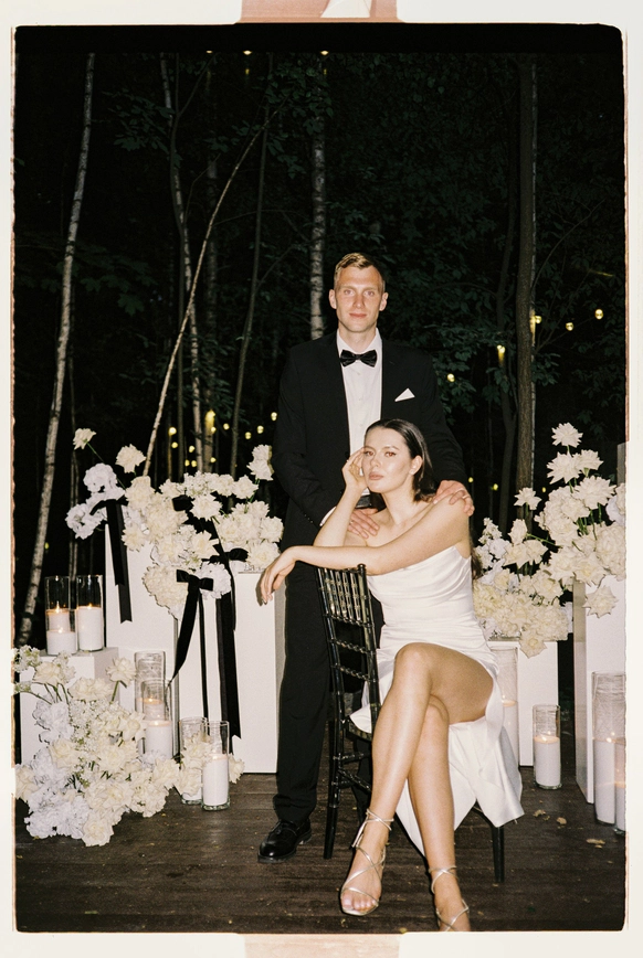 Пара хотела сохранить баланс между классической свадебной эстетикой и современной вечеринкой . Визуальная часть свадьбы строилась на элегантной цветочной теме, а атмосфера вечера - на драйве, юморе и личных деталях пары.