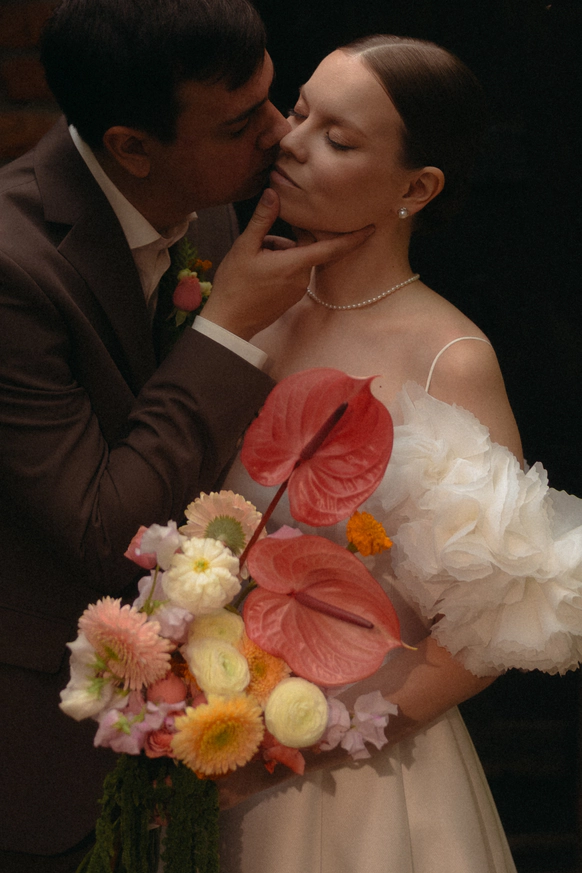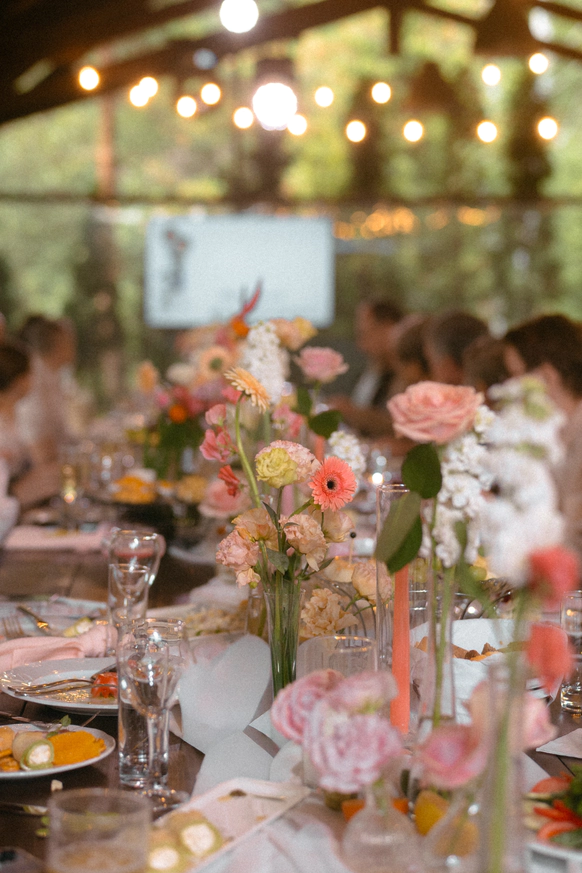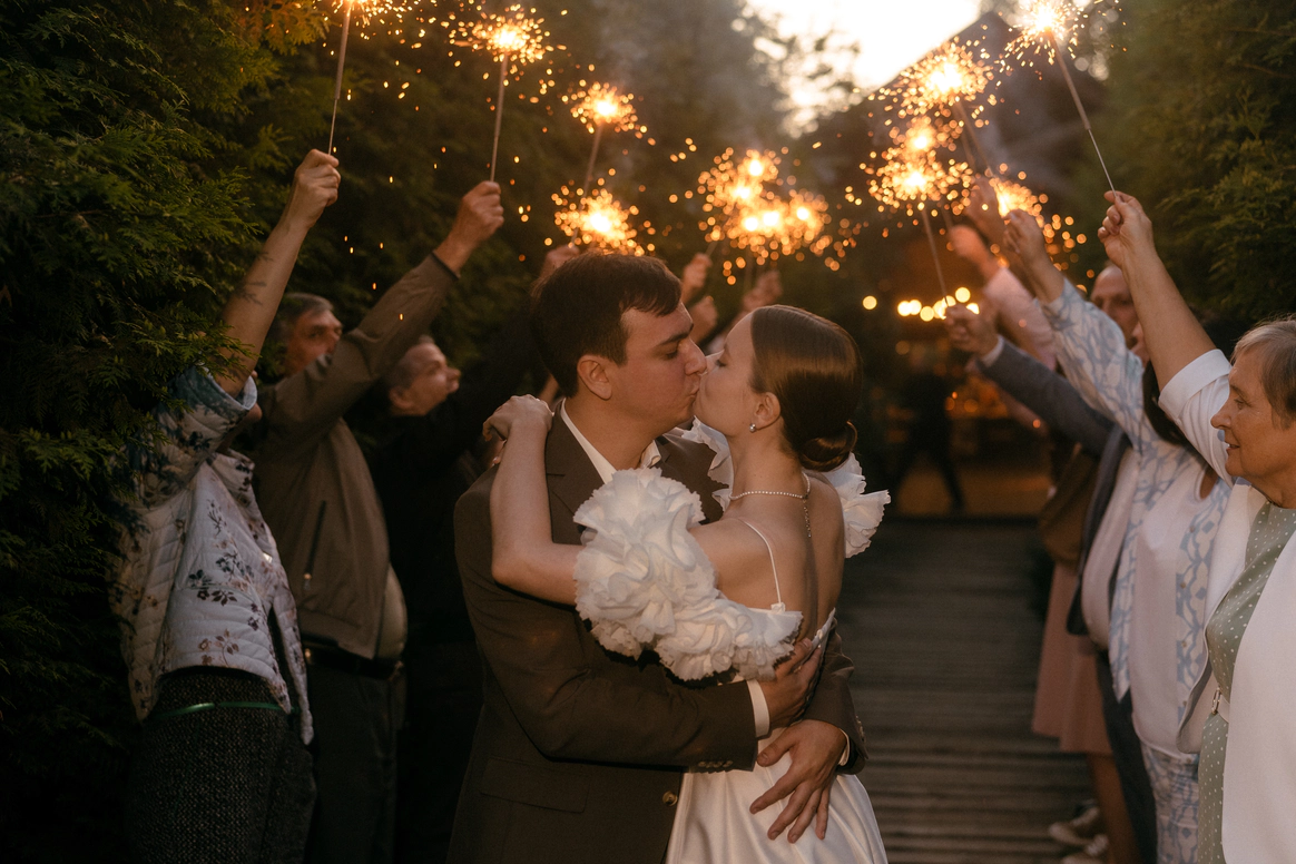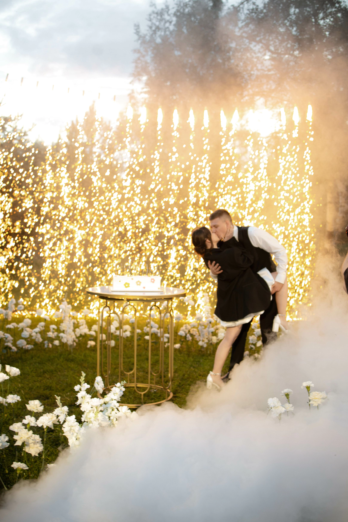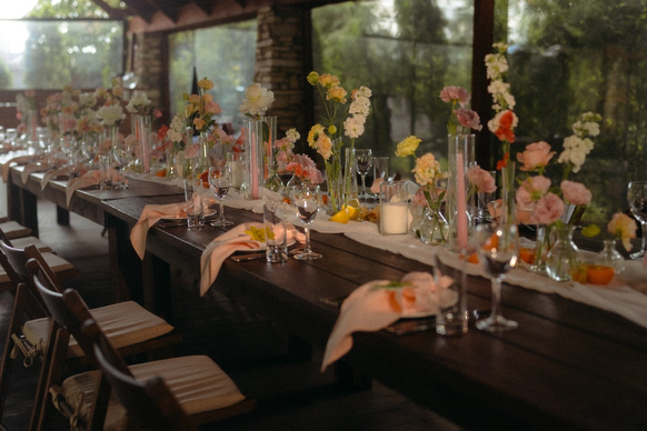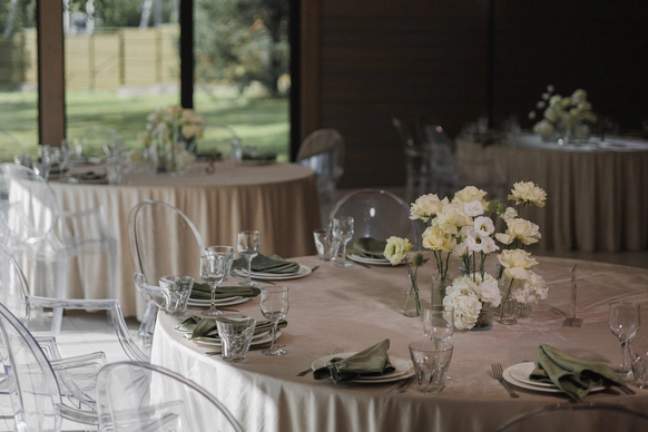 Пара хотела сохранить баланс между классической свадебной эстетикой и современной вечеринкой . Визуальная часть свадьбы строилась на элегантной цветочной теме, а атмосфера вечера - на драйве, юморе и личных деталях пары.