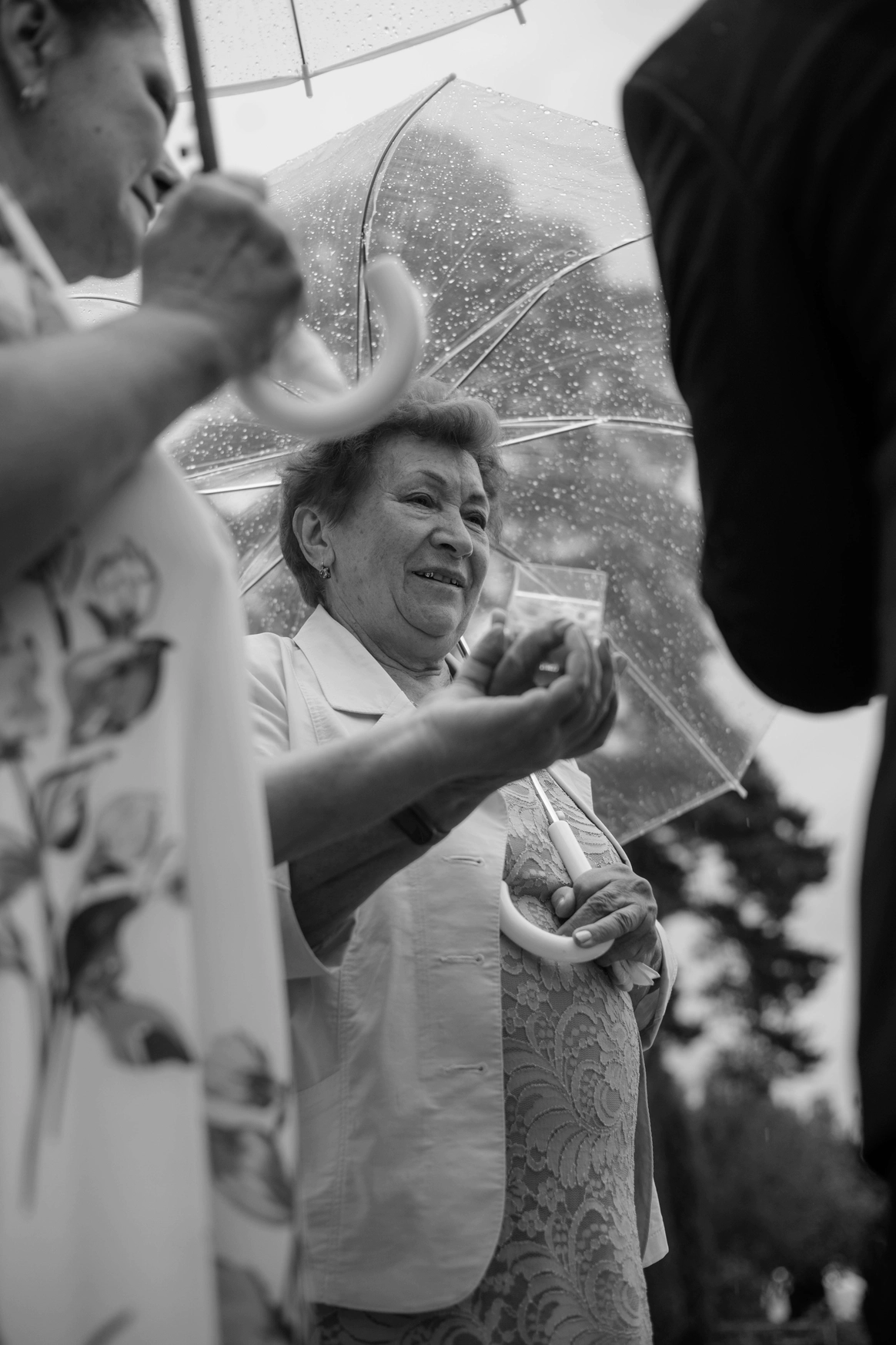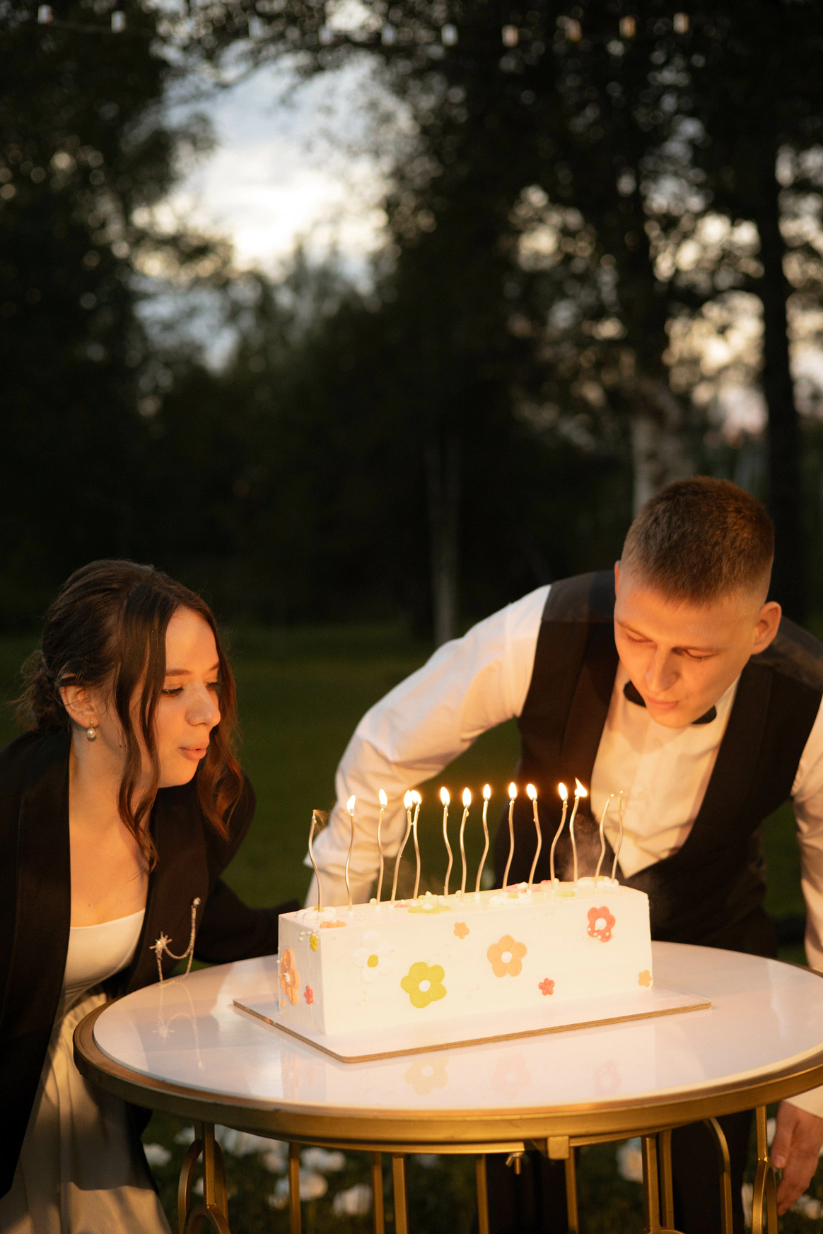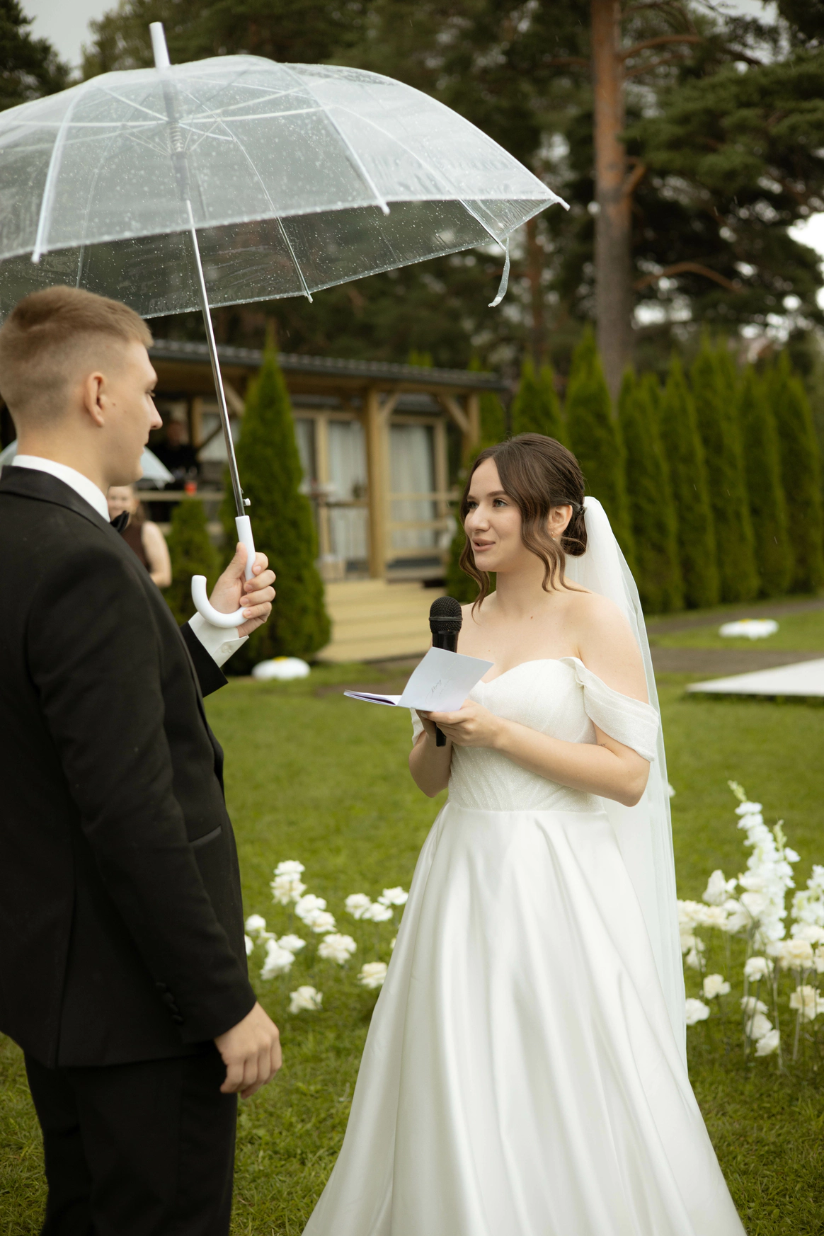 Несмотря на три ливня, мы смогли сохранить большую уличную программу и буквально ловили погодные окна между дождями: фотосессию на закате, переодевание платья, танец и подачу торта провели в короткие промежутки между ливнями