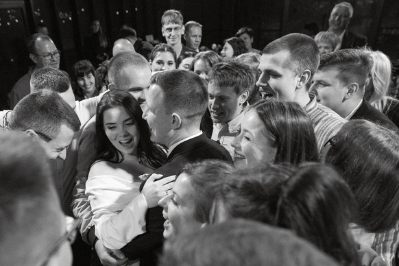 Финалом вечера стало совместное исполнение песни «Половинка» группы Танцы Минус, когда гости и пара обнялись и пели вместе.