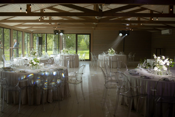 Хотели ужин с самыми близкими на природной площадке c большой, зелёной территорией, амбарный зал, несколько зон для отдыха и номера для гостей.
