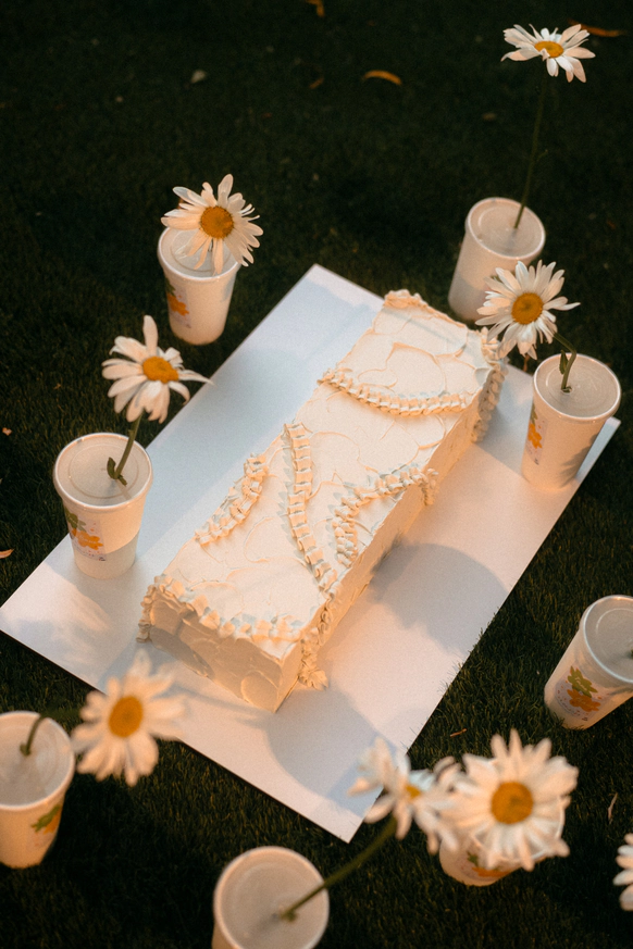 Церемония была оформлена стаканчиков под кофе с ромашками и с фирменными наклейками.