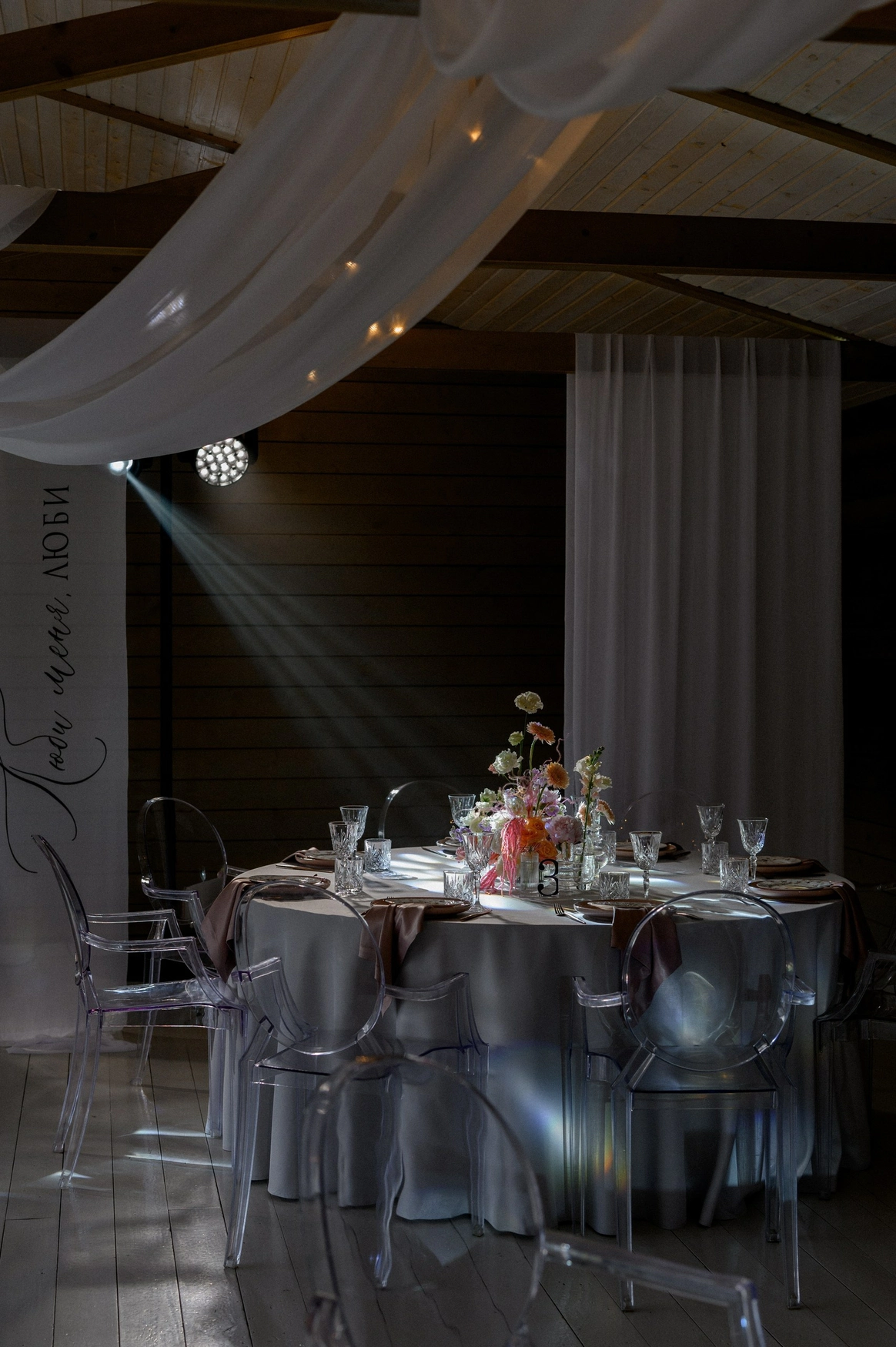 В день прямо перед влекомом мы столкнулись с технической проблемой - отключилось электричество. Команда оперативно переключила трансформатор, поочерёдно запуская свет в разных зонах, чтобы успеть снять декор зала и подготовить звук для церемонии, а ребят мы увели фотографироваться в другом месте, где свет был не нужен) Гости не заметили технических сложностей.