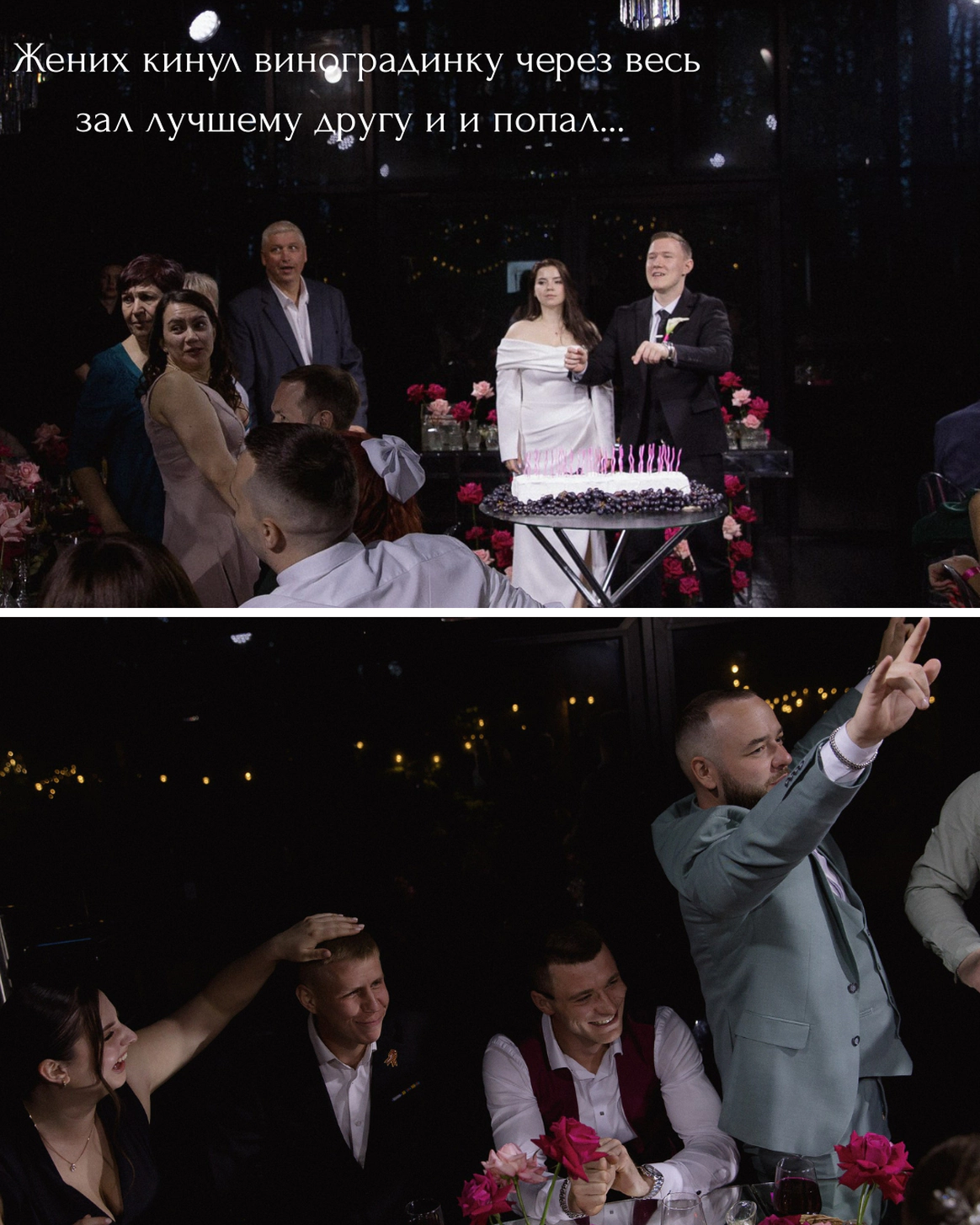 Классические свадебные элементы сочетались с неожиданными решениями: торжественные моменты соседствовали с мемами, рэп-музыкой (вход в зал под песню Алкоголь - Yanixа)