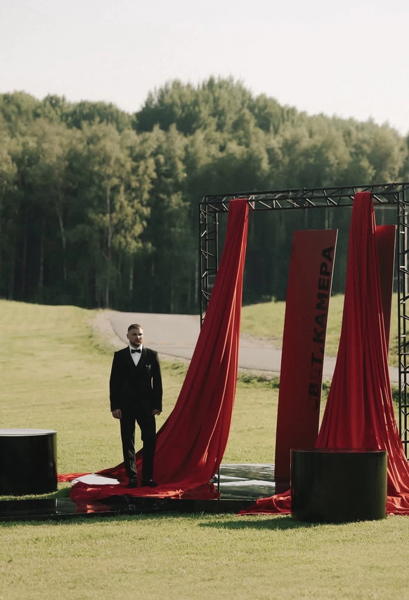 Ключевое - день был наполнен неожиданными форс-мажорами. От шквалистого ветра, который сносил конструктивы и зоны для съемки до самого страшного - удерживая от ветра конструктив, координатор не устоял и выронил кольца прямо на церемонии. Пара принимала все, что происходит с ними и все факапы закрывались максимально эффективно.