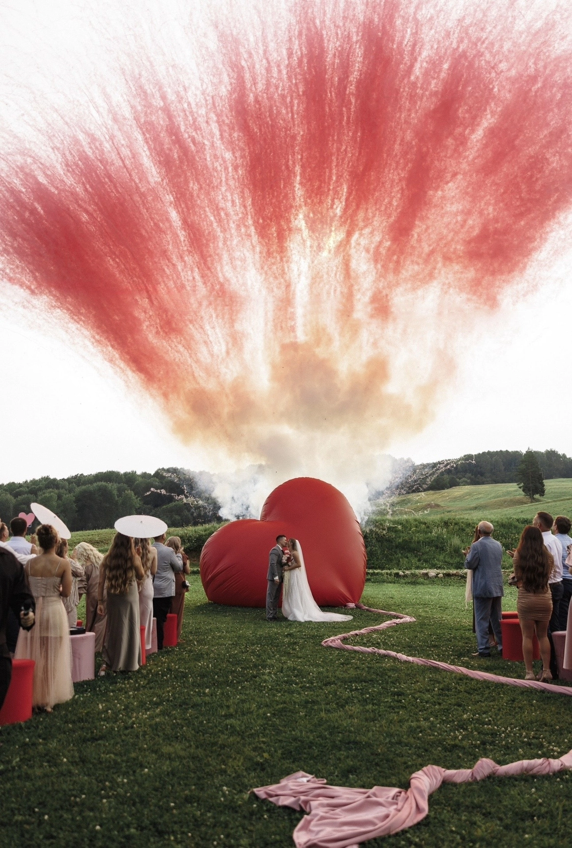 С этого момента центральный арт-объект шарика в форме сердца, ненадолго спустившегося с неба прямо в эпицентр любви, не смог остаться незамеченными среди свадебных изданий России, а так же попал в крупнейший всемирный паблик, собрав несколько сотен тысяч