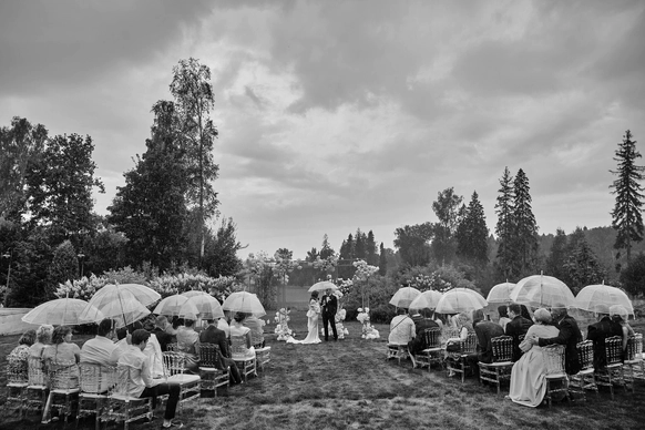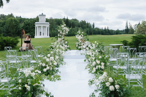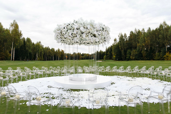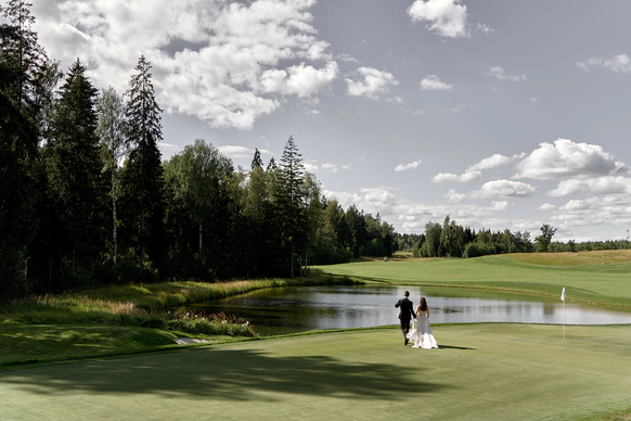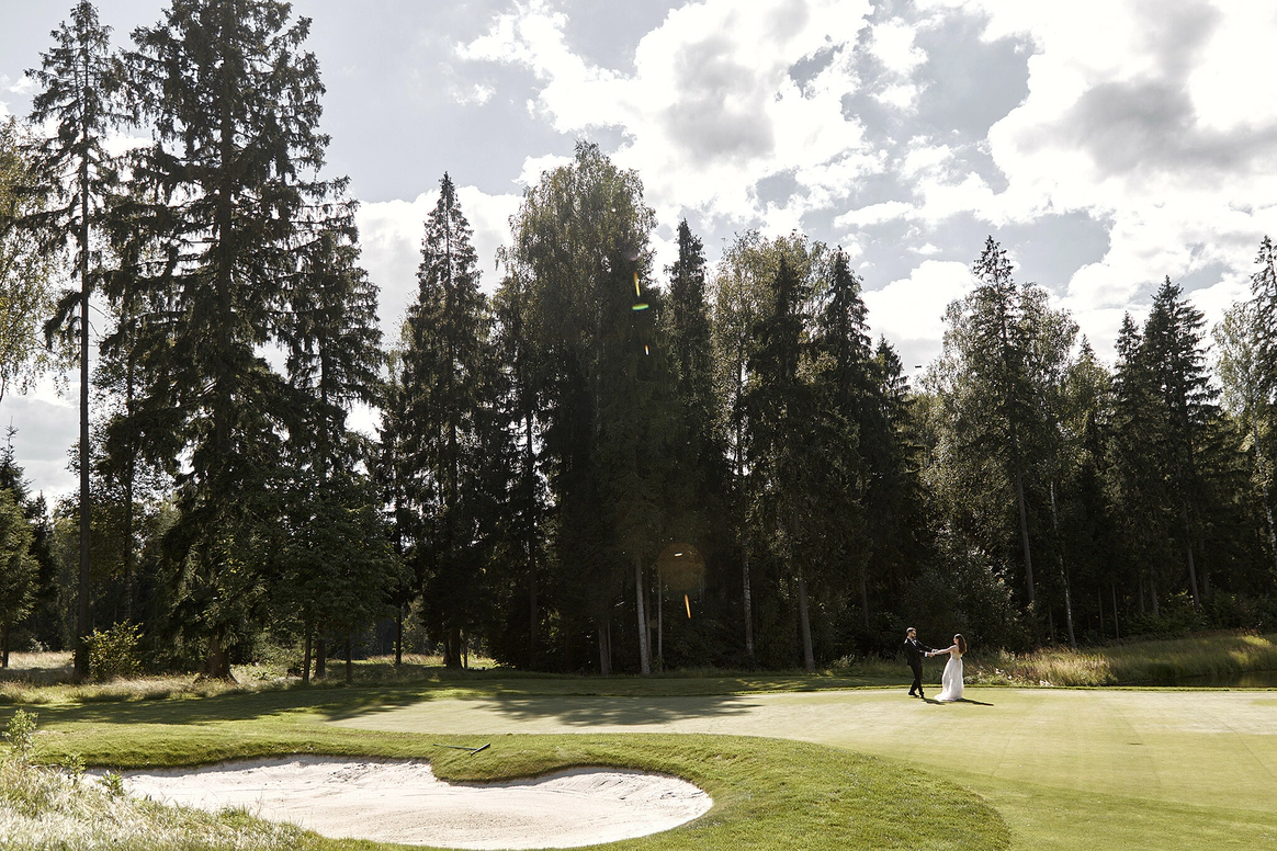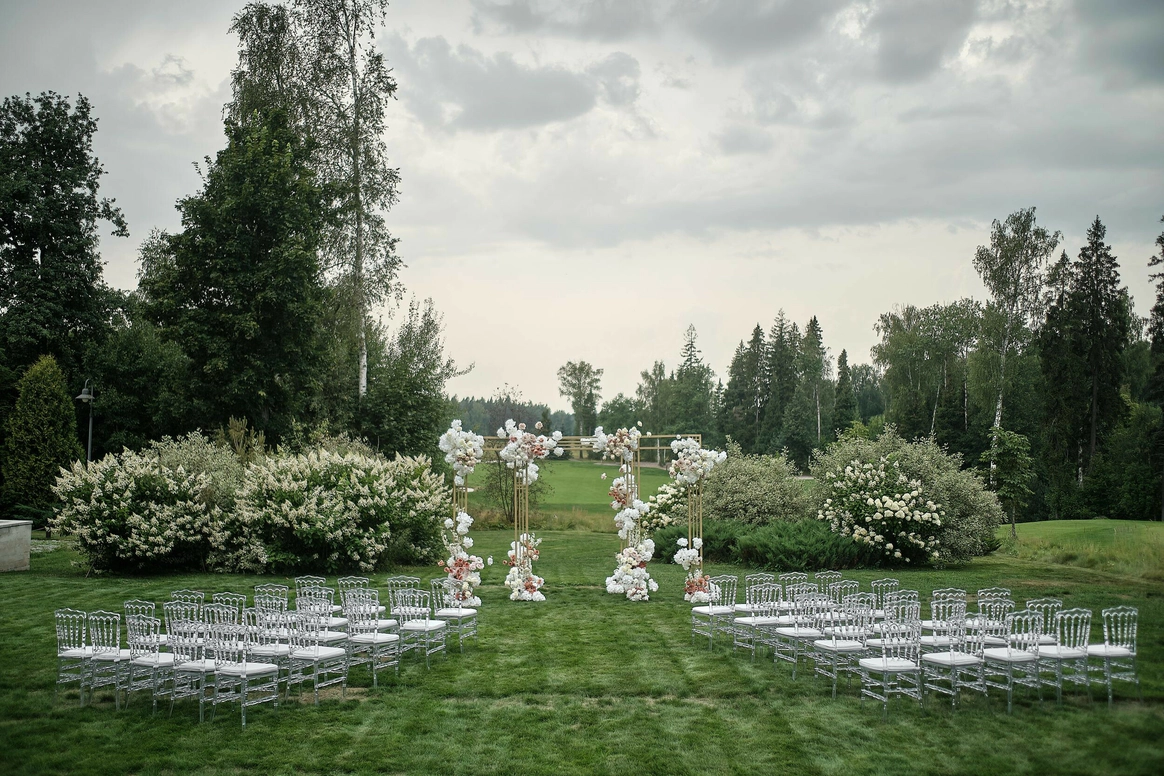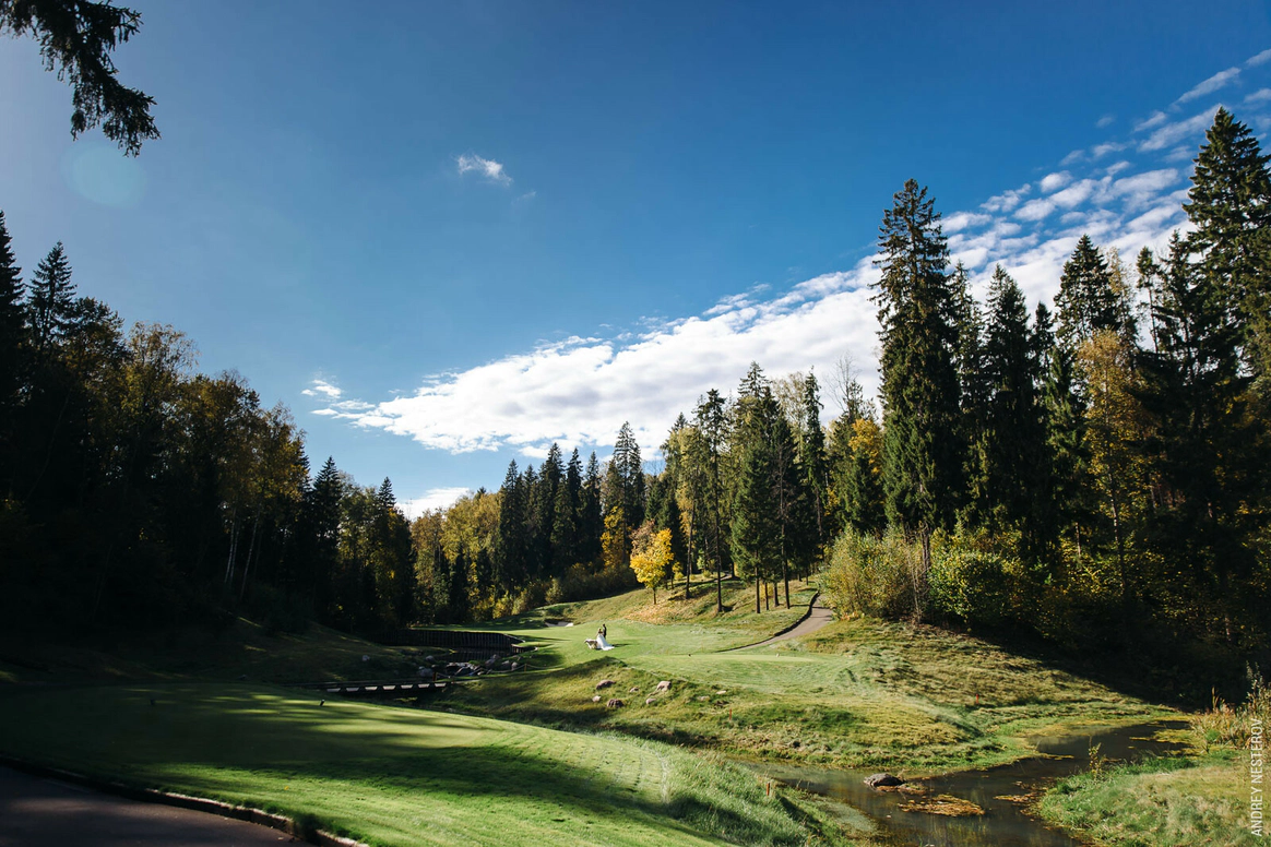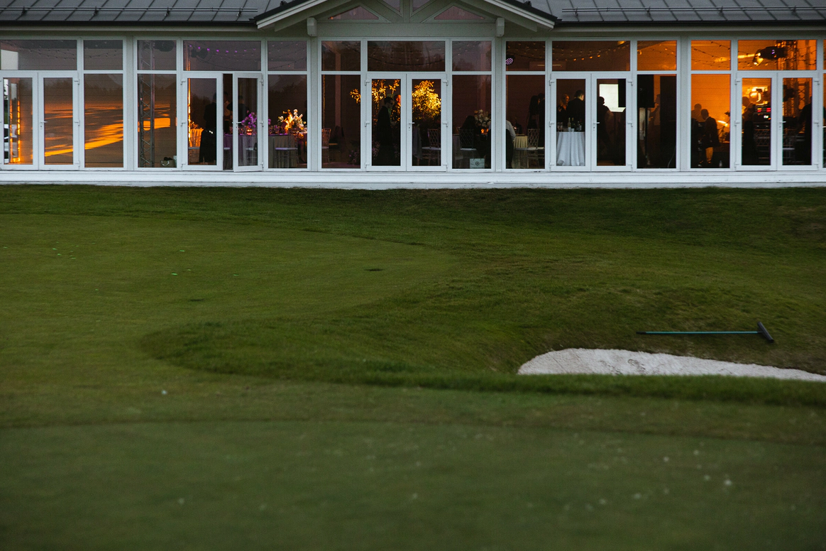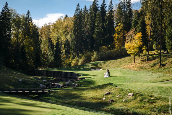 Самая модная и оригинальная свадебная тенденция последнего времени — торжество на территории Гольф Клуба. Свадьба в Гольф-Клубе по-настоящему шикарна. Огромные площади с идеальной зеленой травой, наличие отменных ресторанов, безупречно вежливый персонал и неограниченный простор для вашей фантазии — все это является залогом потрясающего торжества. Это именно то, что нужно для элегантного и статусного мероприятия. Проведение свадьбы в гольф Клубе сочетается с самыми разнообразными тематиками. Это место одинаково хорошо подходит как тем, кто любит светские вечеринки, так и тем, кто предпочитает расслабленную атмосферу праздника в кругу самых близких. Выездную свадебную регистрацию можно провести в очень необычном месте — на гольф-поле, торжественно подъехав к месту церемонии на гольф-каре. Что может быть романтичней?!