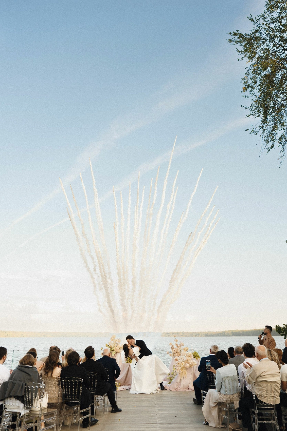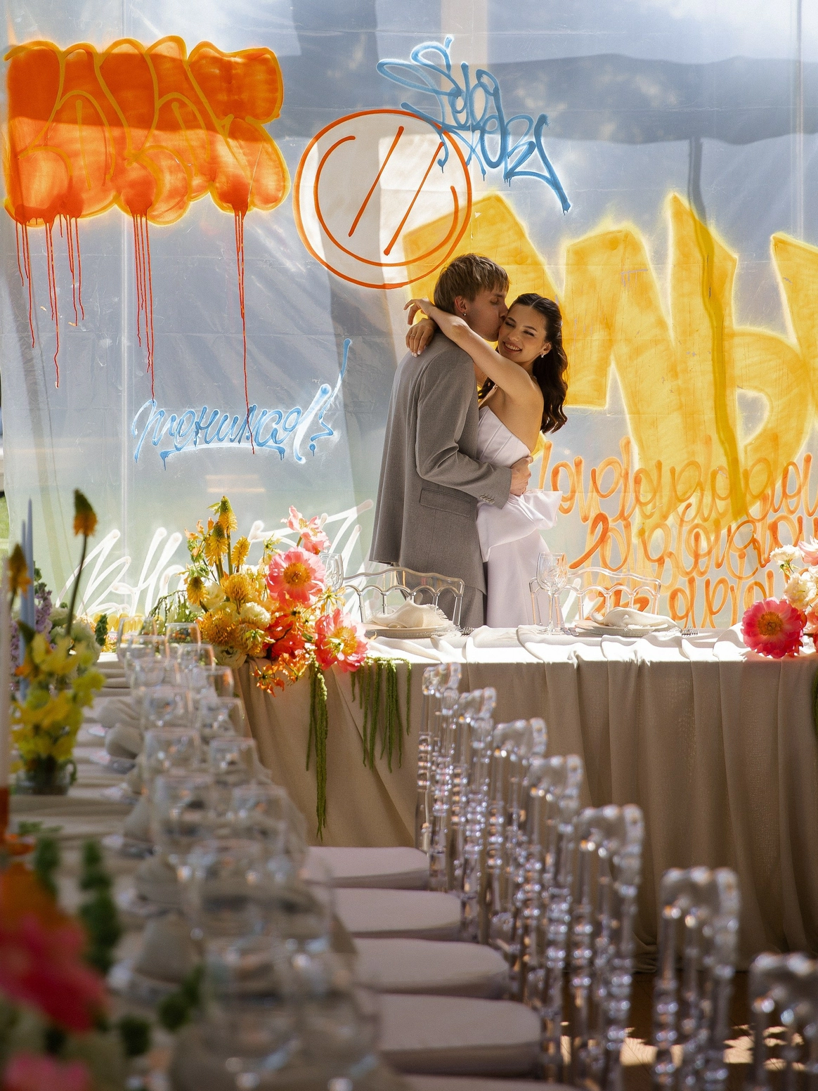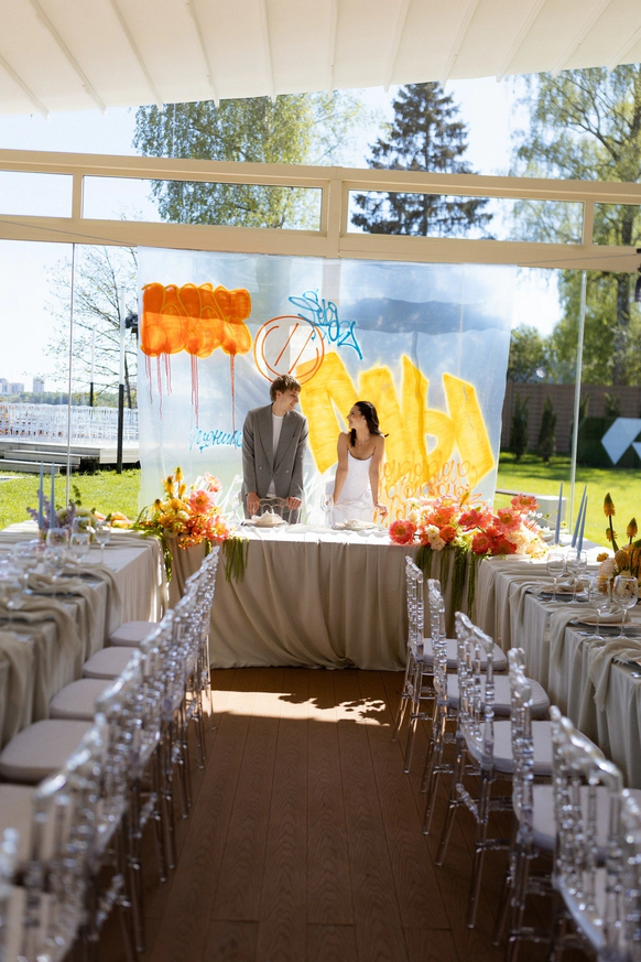 Долгожданное торжество нашей пары на загородной локации The Sun. Изюминкой свадьбы стал нетривиальный фуд декор из самых сочных лаймов от Фуд Сити на Калужском шоссе.
