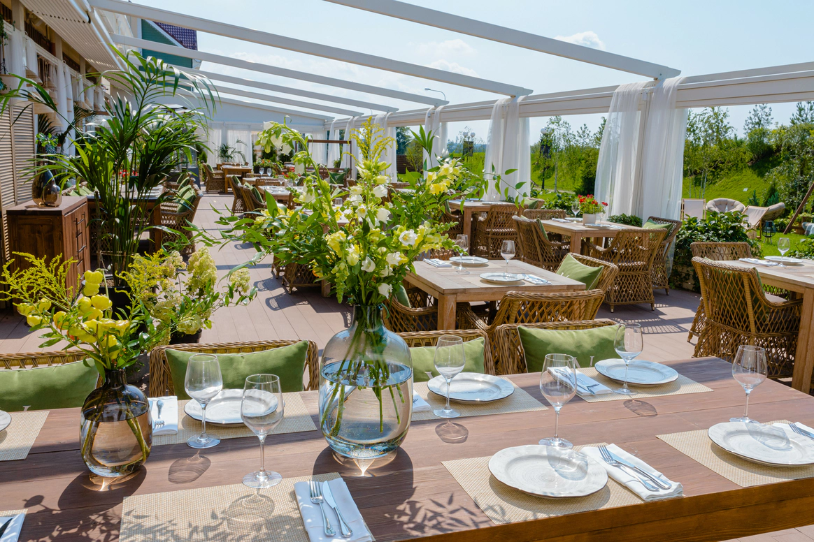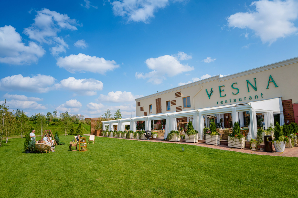 Vesna Novaya Riga Outlet Village — это большой семейный ресторан, расположенный в 20 км по Новорижскому шоссе, который предлагает своим гостям прекрасную возможность ненадолго скрыться от суеты и шума большого города и перенестись в атмосферу легкости и беззаботности. Ресторан воссоздаёт атмосферу благоустроенного загородного дома, в котором одинаково приятно посидеть у камина тесной семейной компанией или собрать всех друзей для шумных посиделок. Передать настроение помогает светлый просторный интерьер с большими панорамными окнами, плетеными мягкими креслами и отделкой из натурального дерева. Ключевую роль, несомненно, играет обилие цветов и растений, превращающих пространство в настоящий зеленый оазис. Vesna на Новой Риге — уникальное место для разноформатных мероприятий: торжественной загородной свадьбы, яркого детского праздника, веселой тематической вечеринки, семейного дня рождения и любого другого важного события. ● 20 км по Новорижскому шоссе Возможность декорирования ресторана на любой вкус ● Идеальное место для семейных кулуарных мероприятий от 5 человек ● Два просторных зала, каждый из которых вмещает до 120 гостей банкетной рассадкой ● Вместительная веранда на 100 человек с широким свободным озелененным пространством перед ней ● Авторская кухня от шеф-повара Коновалова Евгения с акцентом в домашнюю ● Широкая винная и коктейльная карта ● Выездная регистрация на открытой веранде ресторана VESNA ● Детская зона с профессиональным аниматором ● Бесплатный паркинг ● Высокий сервис ● Отсутствие ограничений по шуму Универсальность площадки для разноформатных мероприятий