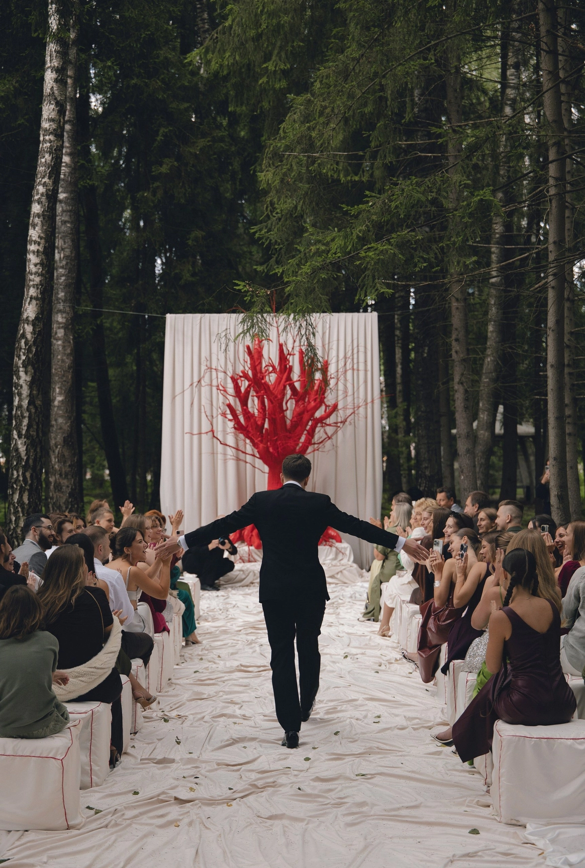 Красное дерево стало сердцем этого дня – оно выросло там, где двое выбрали друг друга.