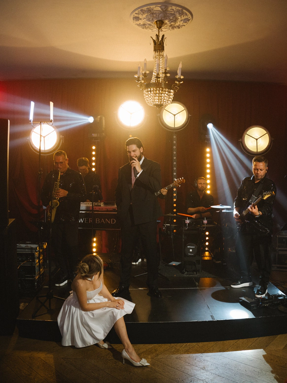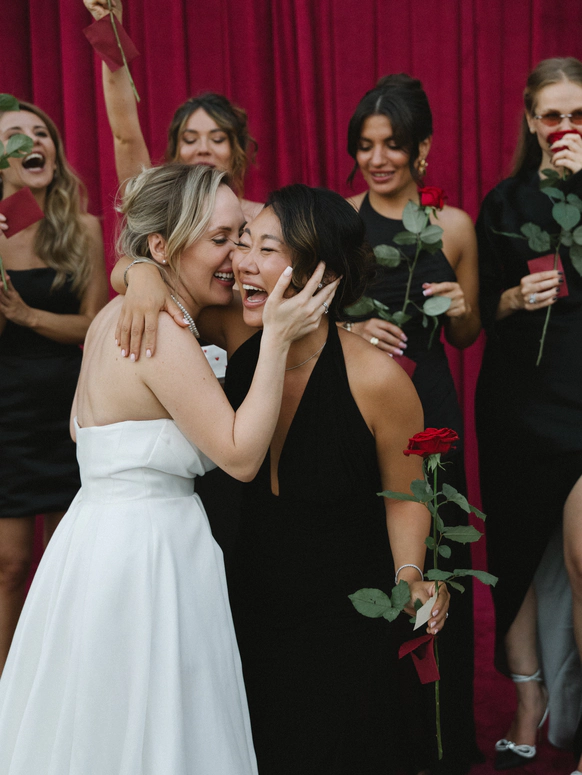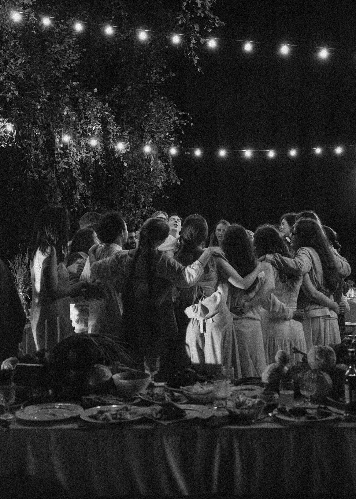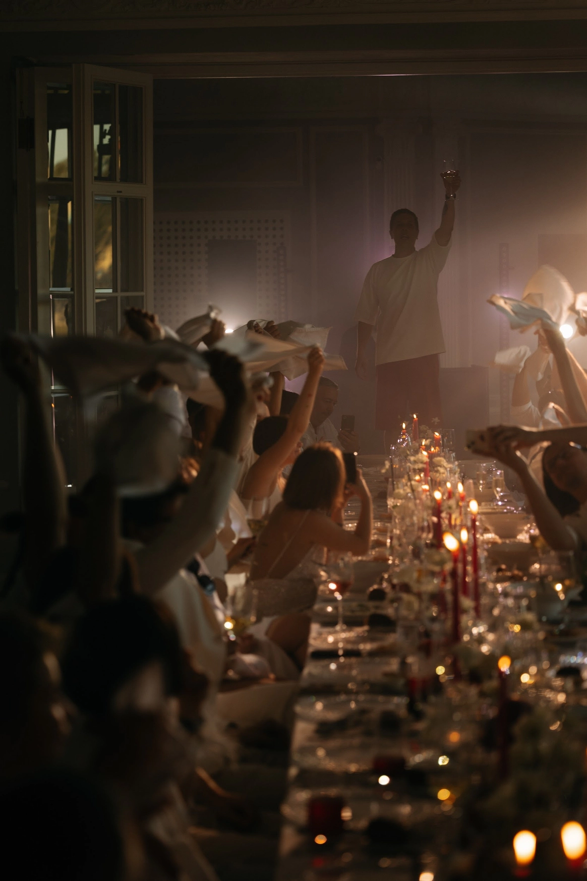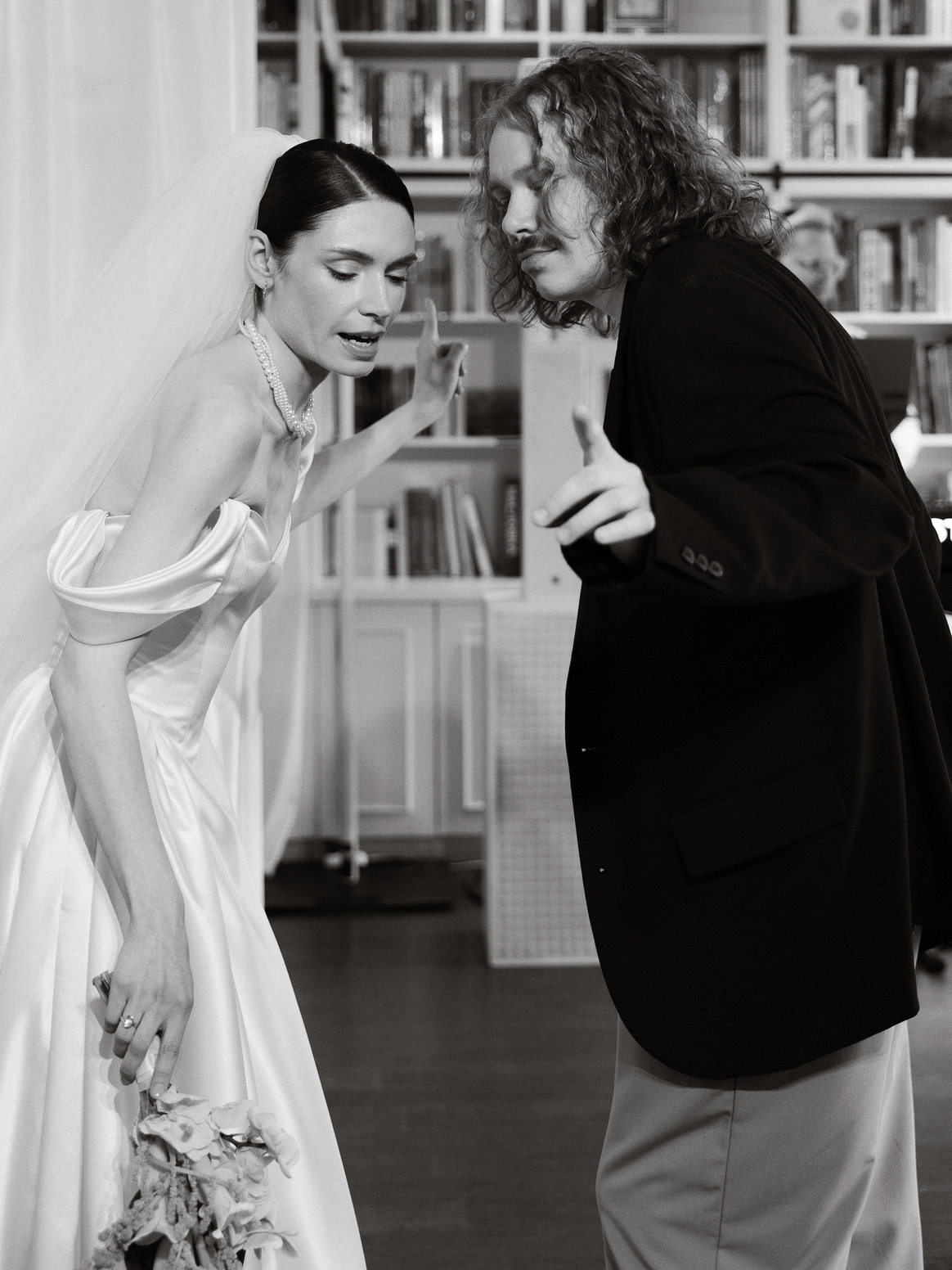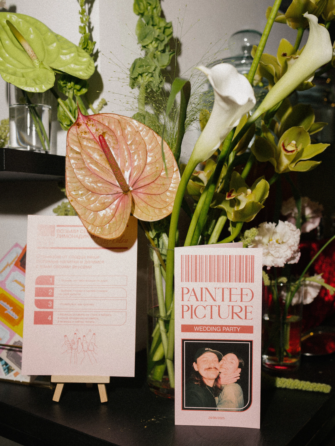 Мы оставили только самое главное: лаконичные детали и цвета, всеобъемлющую поддержку и сервис. Пара познакомилась в караоке — и весь вечер звучали песни, посвящённые друг другу. Друзья пели вместе с кавер-группой, смеялись в фотобудке, поддерживали на церемонии — и в каждом этом жесте отражался их большой, живой, необъятный мир.
