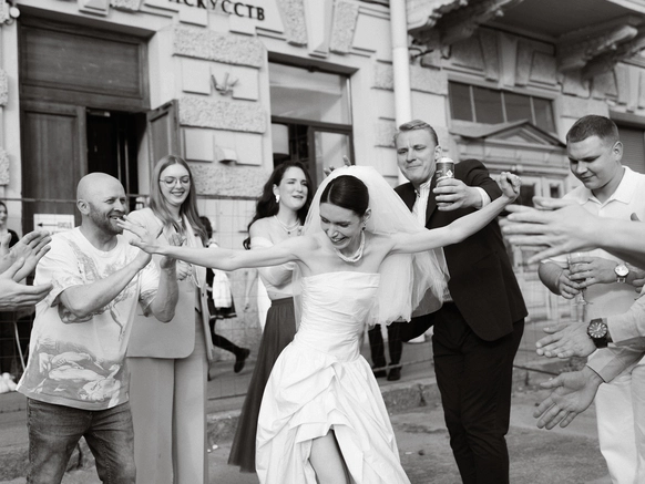 Пара выбрала дату в день «Алых парусов», но это нас не смутило. Мы продумали всё до мелочей: маршруты, время, локацию с учётом перекрытий. Городской праздник лишь усилил драйв вечеринки с открытыми настежь окнами, и все получилось так, как мечтали ребята — с друзьями, шумно, свободно и незабываемо.