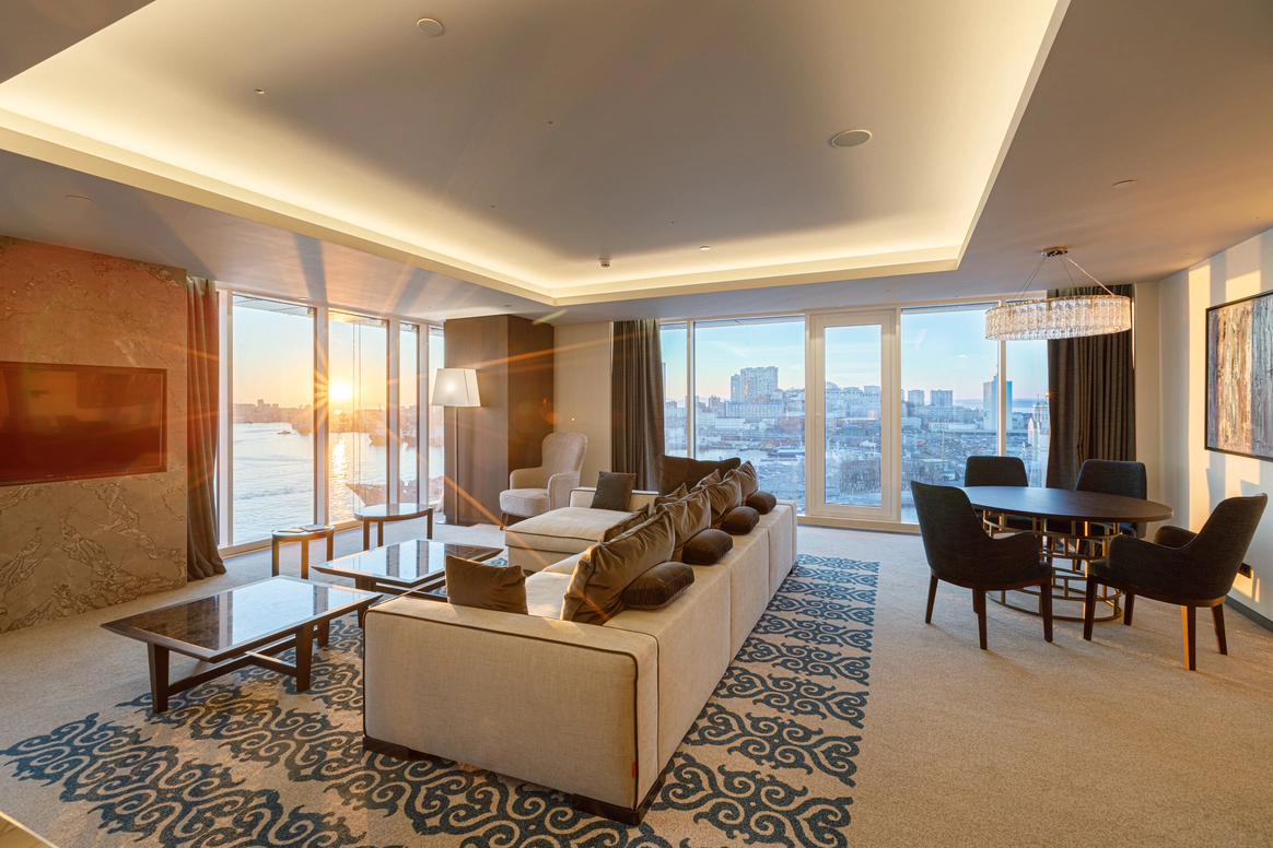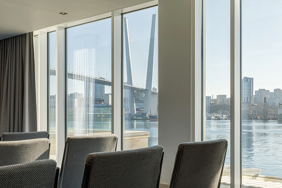 VLADIVOSTOK Grand Hotel & SPA - пятизвездочный отель в самом сердце Приморья с завораживающими видами на парящий Золотой мост, живописную бухту и Амурский залив. Отель VLADIVOSTOK Grand Hotel & SPA включает: ■ 221 изысканный номер различных категорий от 30 до 126 м² ■ Представительскую гостиную ■ 5 ультрасовременных конференц-залов ■ Рестораны и бары ■ SPA площадью 1 700 м² с видом на залив и 25 метровым бассейном VLADIVOSTOK Grand Hotel & SPA идеально подходит для знакомства со столицей Приморья, а также для проведения конференций, деловых встреч, свадеб, гала-ужинов и других мероприятий на самом высоком уровне. Комплексные услуги: сборы невесты, мальчишники, фотосессии и многое другое. Помимо элегантных номеров и уникальных конференц-возможностей, VLADIVOSTOK Grand Hotel & SPA примечателен гастрономической составляющей. В распоряжении гостей отеля и Владивостока ресторан фьюжн-кухни АкваТерра, аутентичные рестораны японской кухни MIYAKO и Teppanyaki Grill, под руководством японского бренд-шефа Акира Кусуми, в которых вы сможете насладиться разнообразными блюдами из свежайших премиальных продуктов. А также ресторан великой китайской кухни Lotus Room, сочетающий в себе традиционные блюда гуандунского региона и самые изысканные рецепты Китая. По желанию гостей любое мероприятие может быть дополнено блюдами из любого ресторана: суши, роллы, утка по-пекински, дим самы и другие хиты азиатской кухни в превосходном исполнении с трепетным сохранением традиционной рецептуры. Дополнительное удовольствие гостям доставит посещение SPA-центра GRAND SPA. Тут мы дарим Вам уникальный опыт погружения в культуру традиционных японских SPA, но дополняем его новейшими технологиями и, разумеется, колоритом Приморья. В посещение включено: • 25-метровый бассейн с джакузи-зоной • Расслабляющие, эргономичные шезлонги с подогревом • Акватермальная зона с минеральными ваннами в стиле «онсэн» • Просторный хаммам и финская сауна с панорамным видом на бухту Золотой Рог • Тренажерный зал с оборудованием премиум-класса новейшего поколения TECHNOGYM • Авторское меню премиальных SPA-услуг и массажей • Салон красоты А также к вашим услугам ДЗЕН-кафе с wellness-меню для здорового и вкусного питания. Философия отеля – предоставление уникального проживания, исключительного сервиса и высококлассной кухни. Для гостей, которые хотят испытать самые незабываемые впечатления от путешествия в Приморье, мы предлагаем индивидуальные туры с посещением самых интересных и завораживающих мест края с персональным сопровождением и пятизвездочным сервисом.