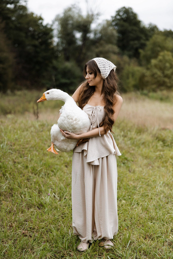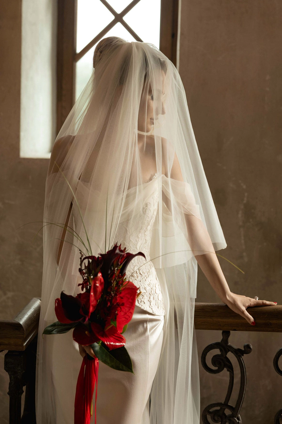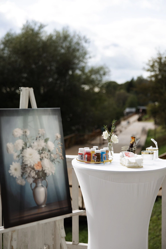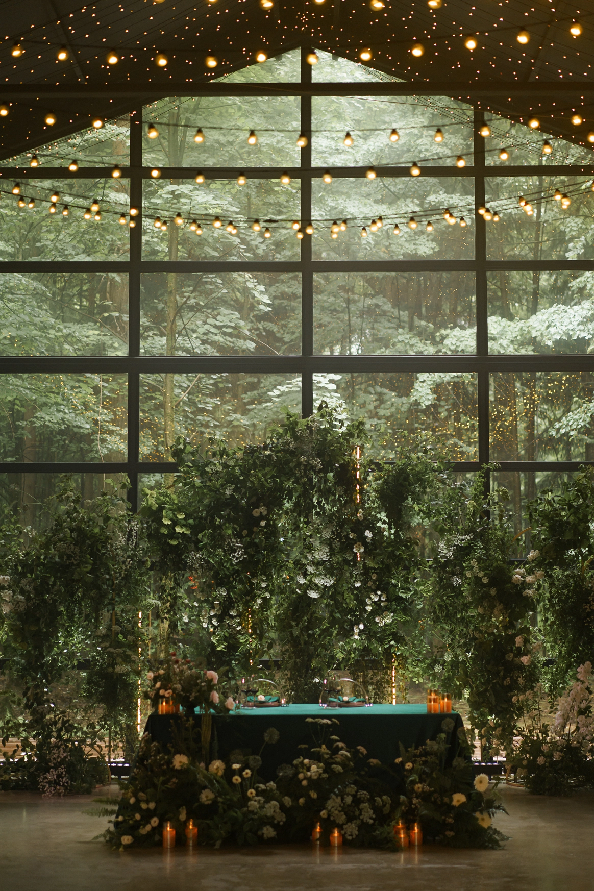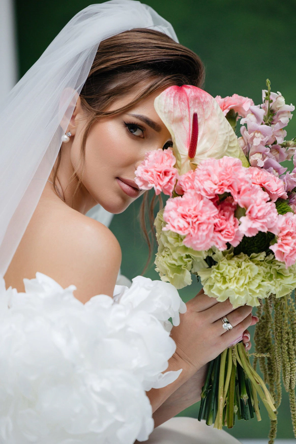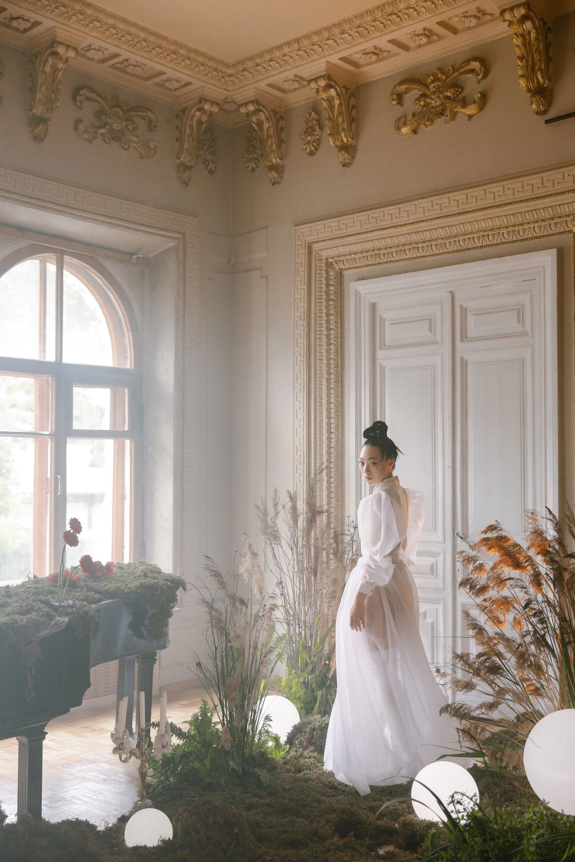 Эта комбинация позволила объединить романтичность образа невесты с естественной природной средой площадки.