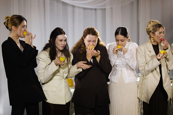 Поэтому вместо традиционного бросания подготовили челлендж — поедание лимонов на скорость. Без шуток: кто осилит фрукт — та и готова к серьезным отношениям. Смех и море эмоций сделали этот момент одним из самых ярких за вечер.