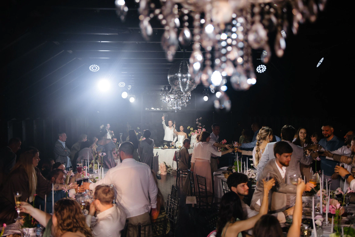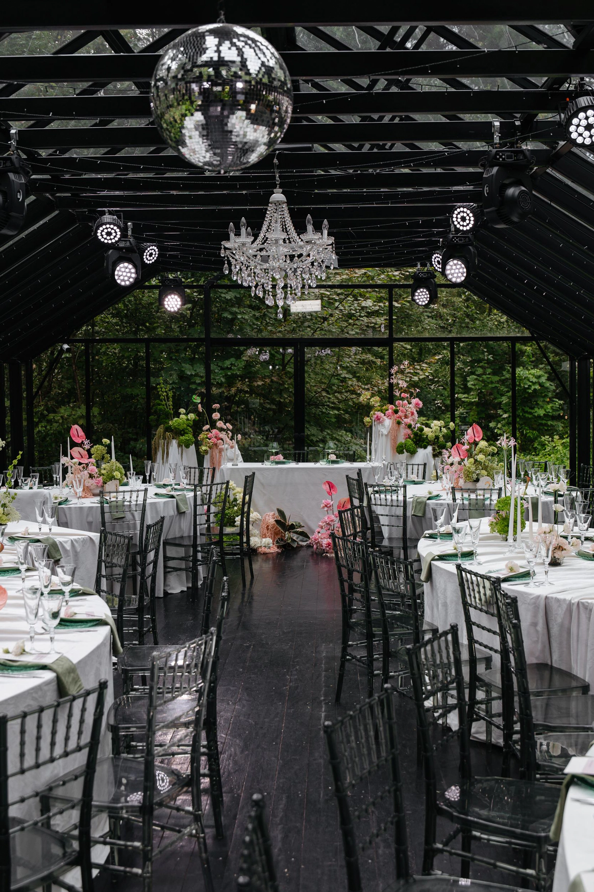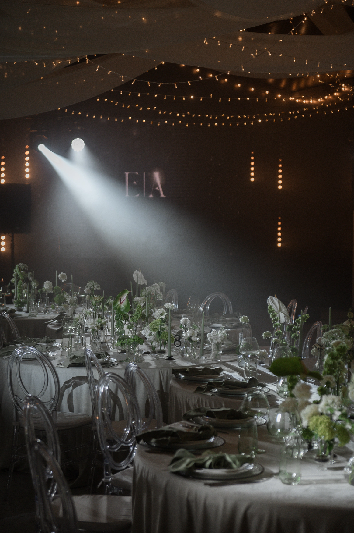 Площадку мы выбрали из расчета на утвержденные 50 гостей и кавер группу. Но в процессе подготовки количество приглашенных увеличилось до 93 человек. И это стало главным вызовом в организации пространства, которое, казалось, не рассчитано на такой масштаб.