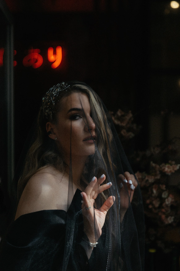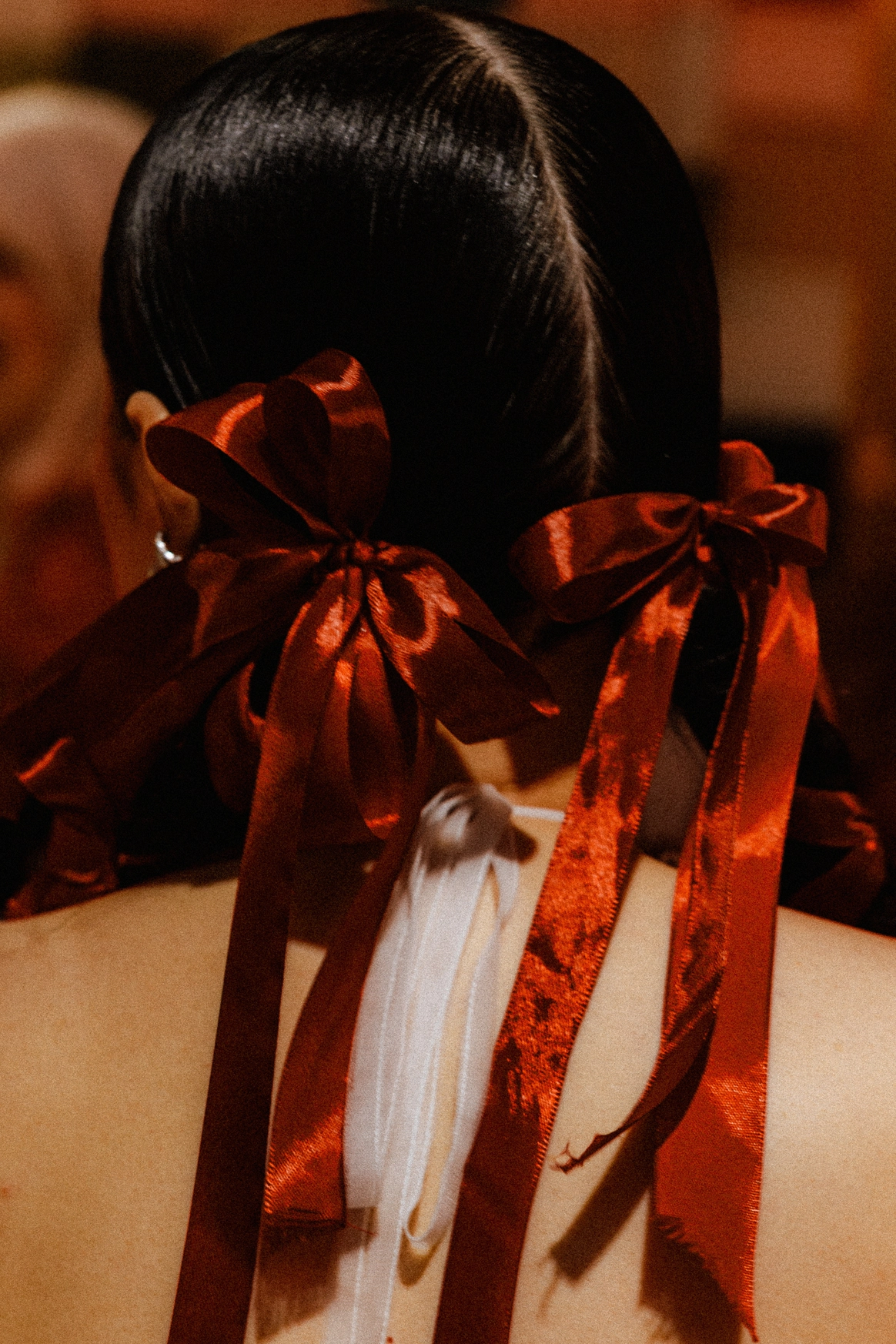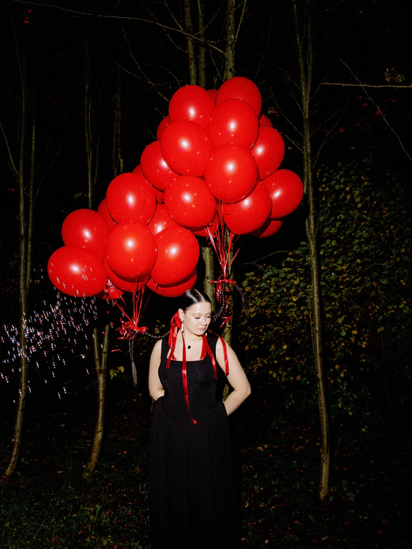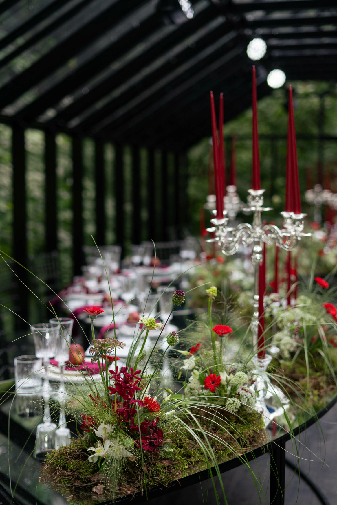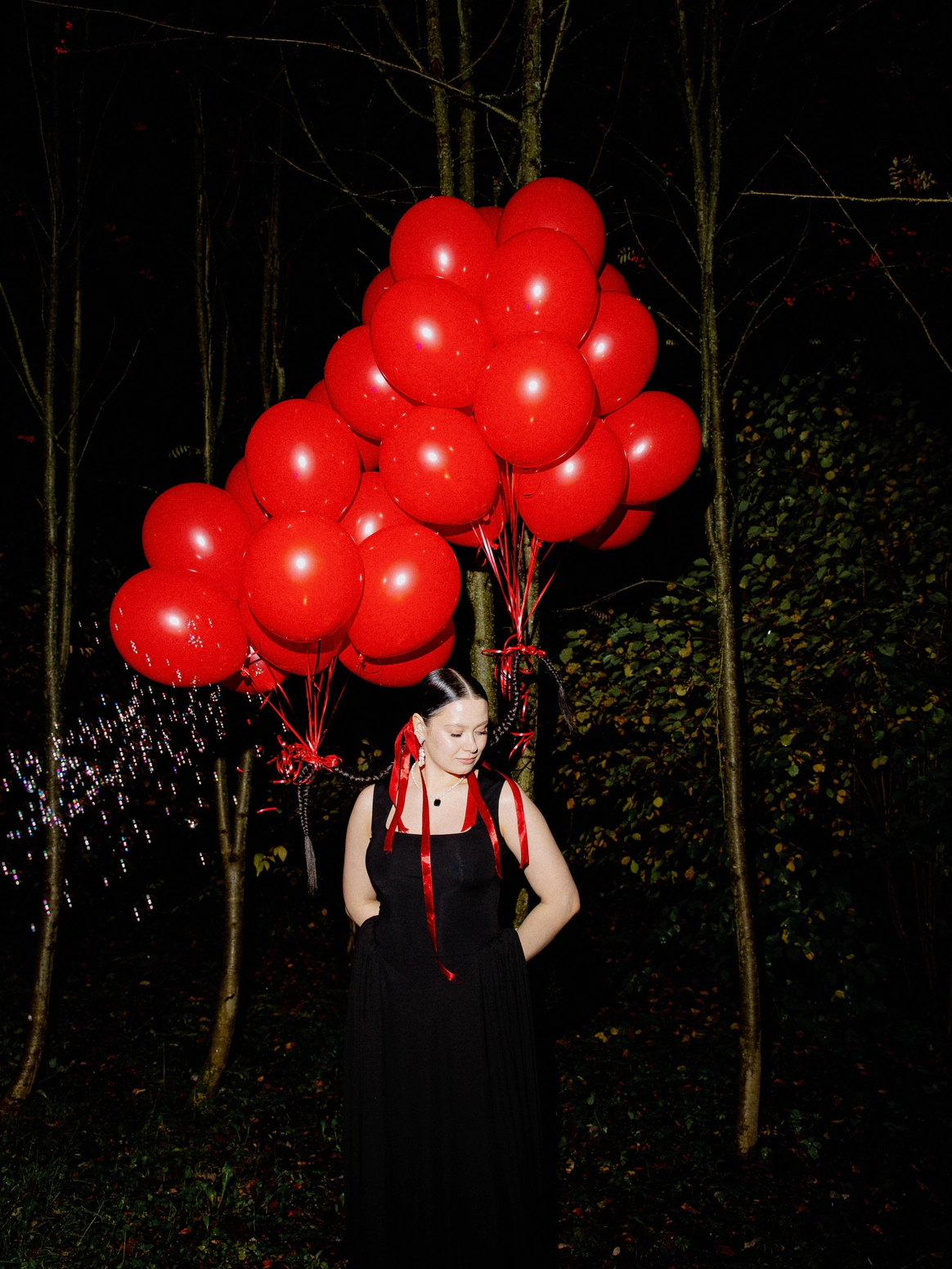 Важной частью проекта стали образы пары. У невесты было несколько образов, дополненных длинными косами с красными прядями. Образ жениха был создан по индивидуальному пошиву - черный костюм с красными вставками с кисеей. Образы поддерживали общую концепцию и подчёркивали личный характер пары.