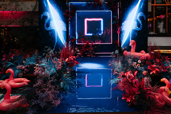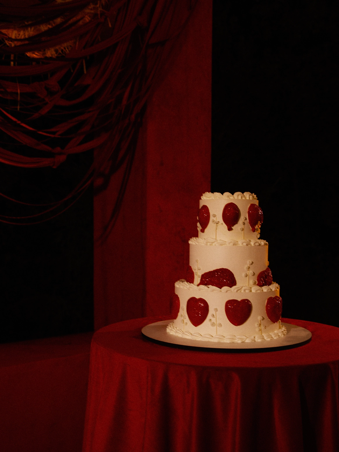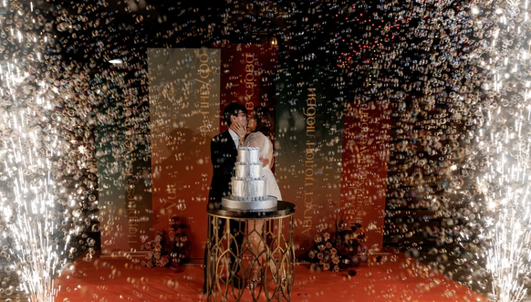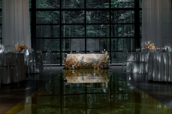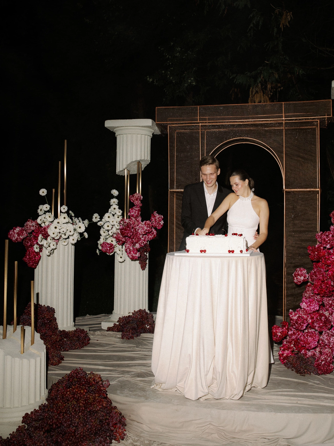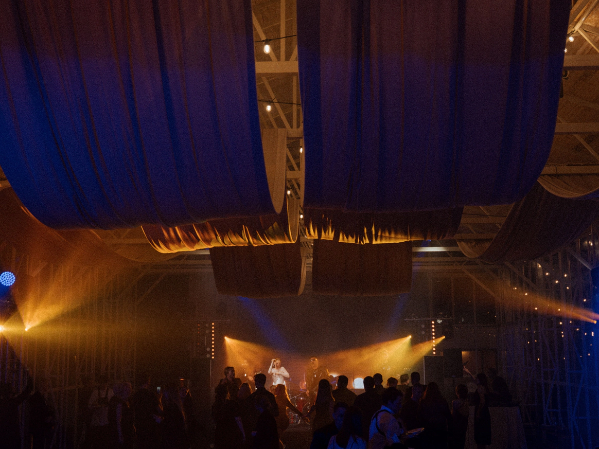 Несмотря на сдержанный welcome и дресс-код blaсk tie, в начале вечера гостей встречал иллюзионист с "неудачными" фокусами - опять возвращая нас к контрастам. Кавер-группа - это особая любовь, которая случилась в одном из путешествий пары в Нижний Новгород. Вечер завершили бар с авторскими коктейлями и нестандартный торт-арт-объект на стыке фэнтези и сюрреализма, который пара впервые увидела вместе с гостями.