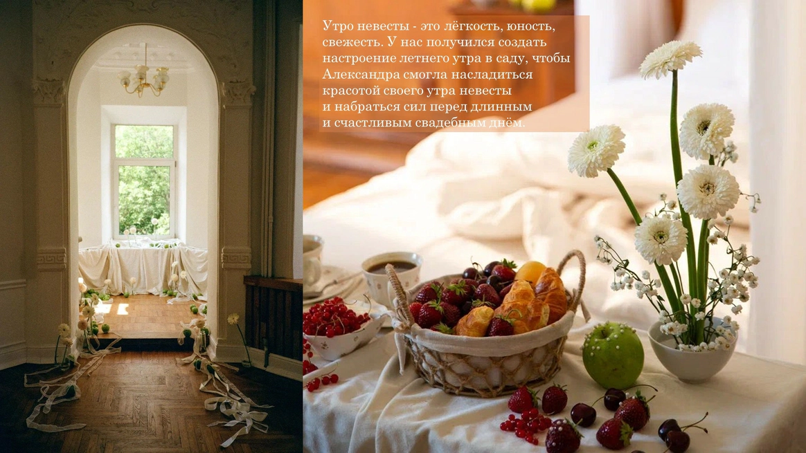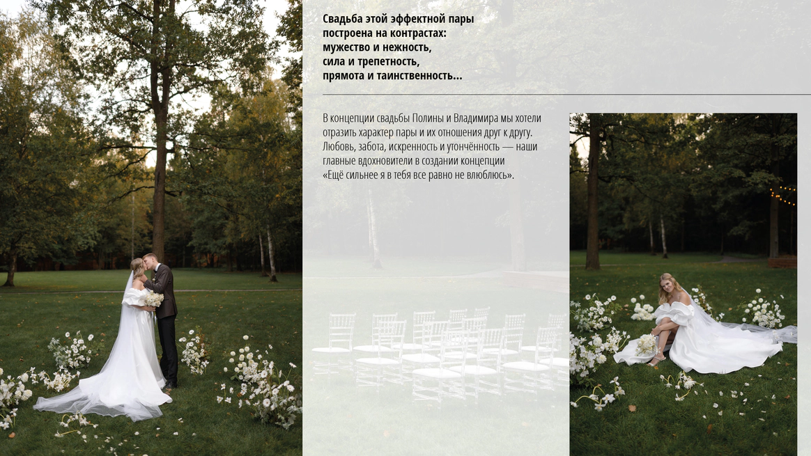 Я — Наталия Бурда, владелица и основатель студии декора Your day. Моя эстетика - это красота вне времени, отраженная в декоре, флористике и общем стиле торжества. Мой фокус внимания — постоянный поиск лучших решений в декоре и дизайне и отслеживание тенденций в мире моды, чтобы создавать самые актуальные события. Я и моя команда много учимся, оформляем проекты любого масштаба и реализуем в декоре самые смелые желания своих клиентов. Мы помогаем создать для наших героев счастливые воспоминания, которые останутся с ними навсегда. Особая философия нашего агентства — мы не делаем шаблонные свадьбы. Мы верим, что свадьба — это отражение уникальности пары и их любви друг к другу. Мы создаём персонализированные концепции декора, которые отражают стиль и воплощают мечты наших молодоженов. С одинаковым удовольствием мы реализуем как масштабные, так и камерные истории.