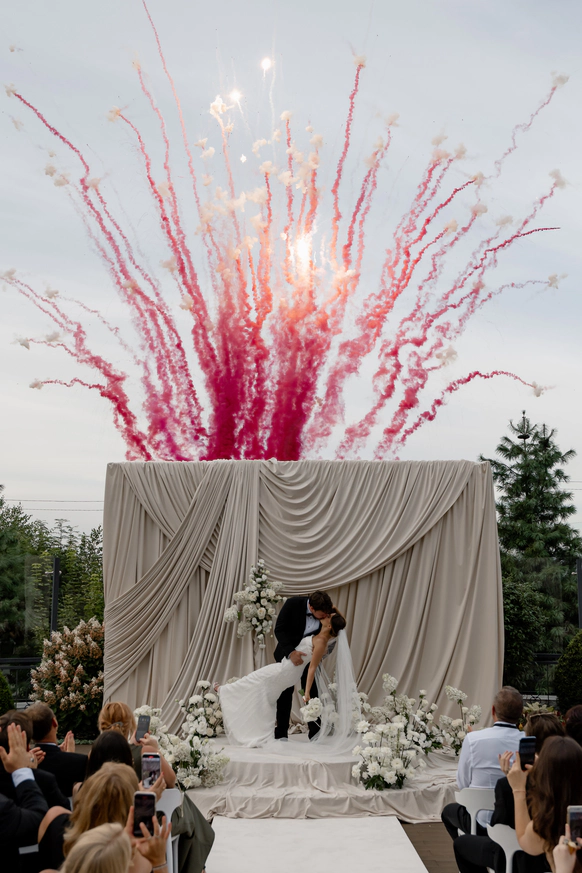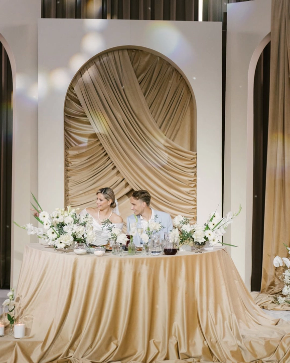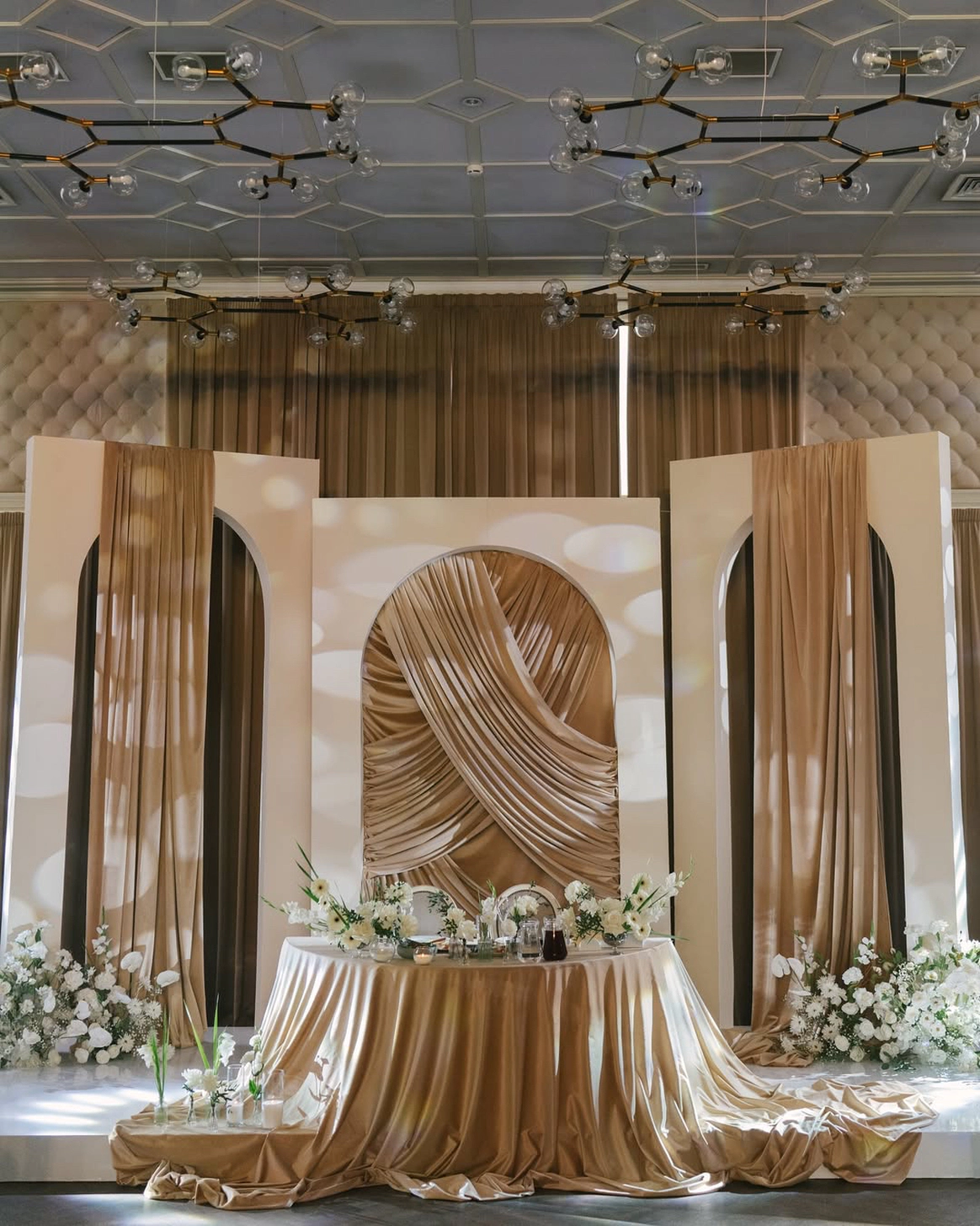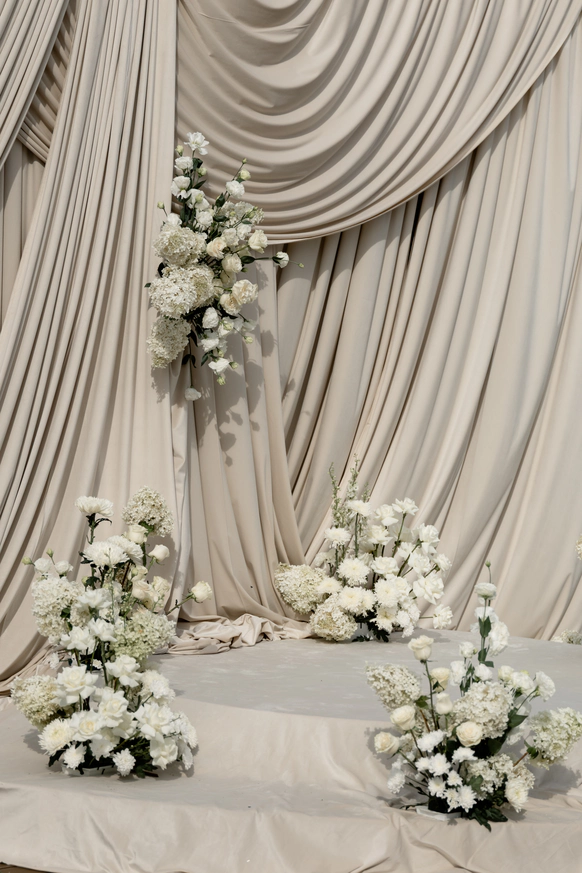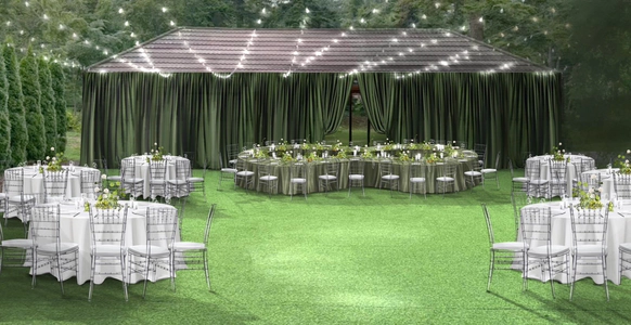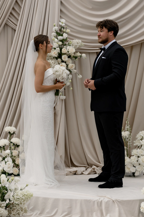 классическая церемония под открыты небом в актуальных драпировках с местной флористикой ,