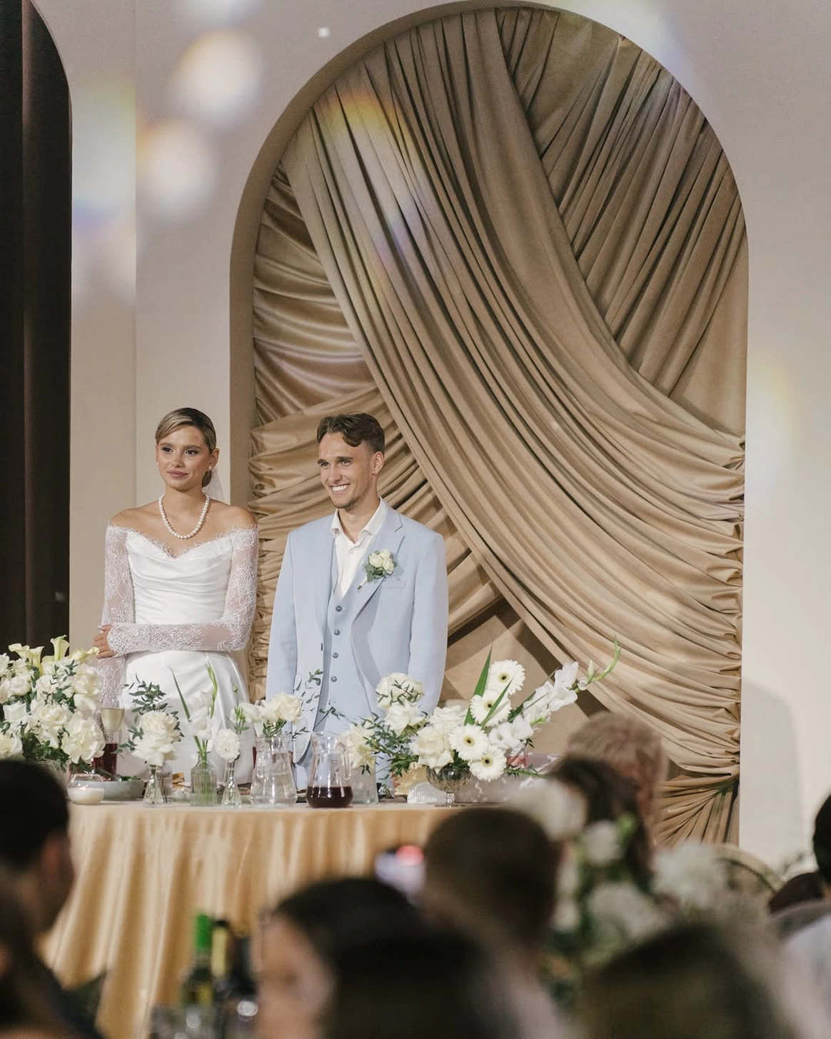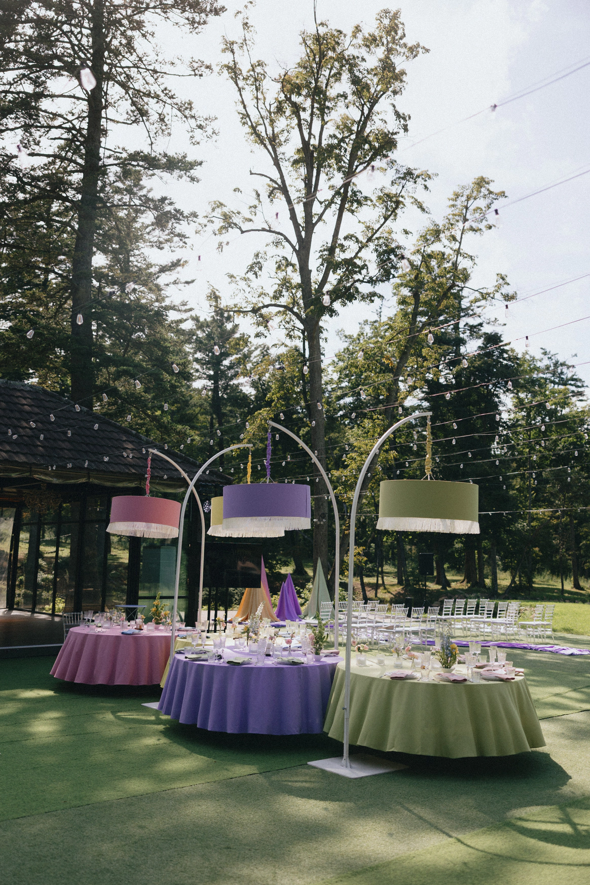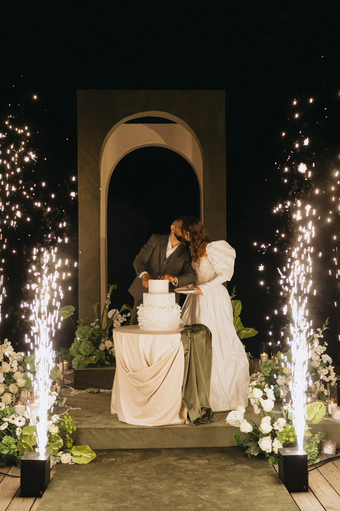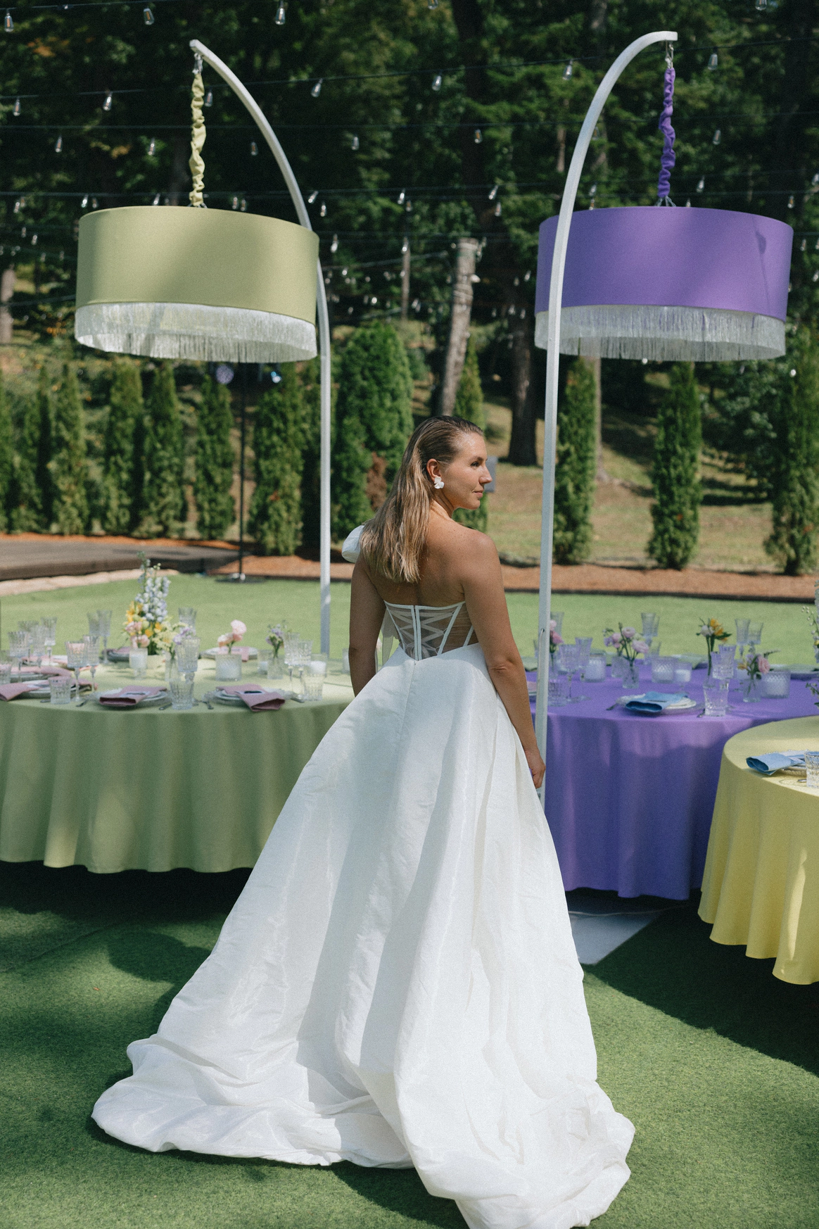 церемония проходила на пирсе озера где 2 арки стоящие друг за другом, символизировали жениха невесту. Кремовая арка - словно девушка, стоит за более высокой зеленой аркой, как невеста, которая теперь "Замужем"