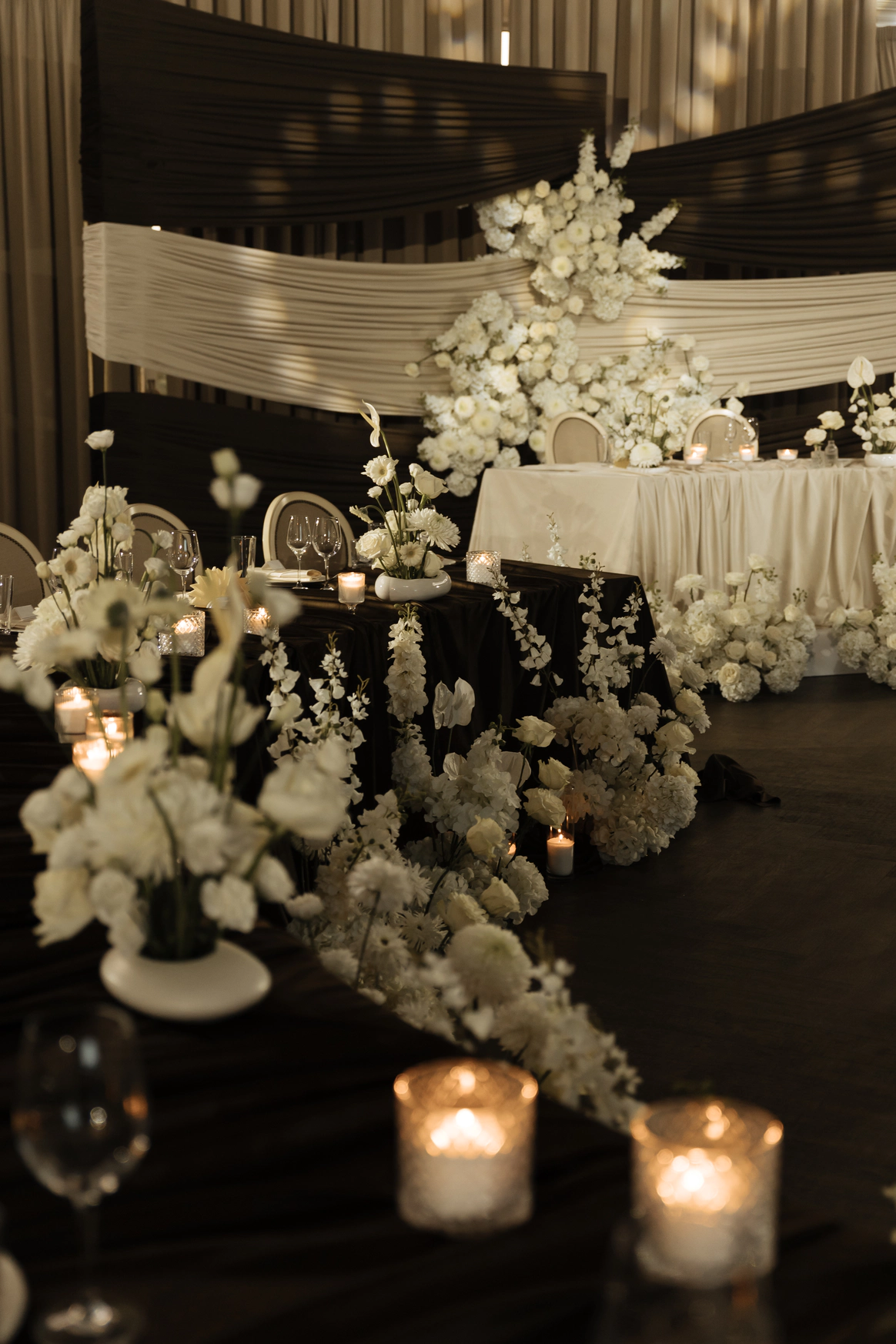 Меньше половины суток на монтаж ...ночью совместно с тех.группой возводили стены разделяя зал , драпировали пространство , расставляли мебель и декор