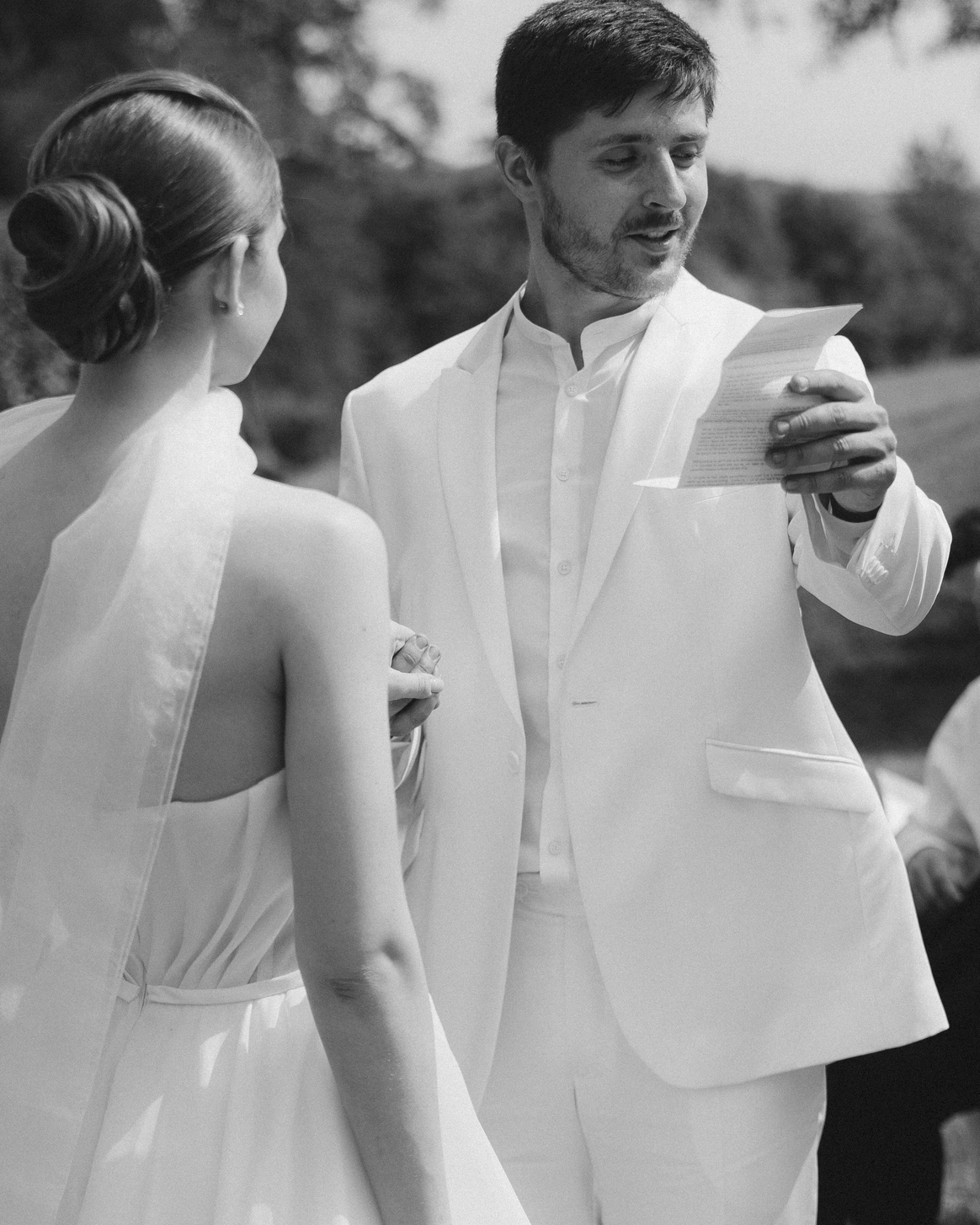Это была моя первая зарубежная свадьба и сразу во Франции. По-настоящему международная история любви: клятвы жениха и невесты были переведены на четыре языка, чтобы каждый гость услышал их сердцем. Мне хотелось сохранить баланс между элегантной постановкой и детской радостью праздника. Эта серия - о свободе быть собой. О любви без границ. О свадьбе, где высокая эстетика сосуществует с искренностью и лёгкостью. В своих работах я сочетаю эмоциональный репортаж и ненавязчивую постановку с ноткой драмы и стиля. И эта серия поистине передает мое ощущение свадеб!