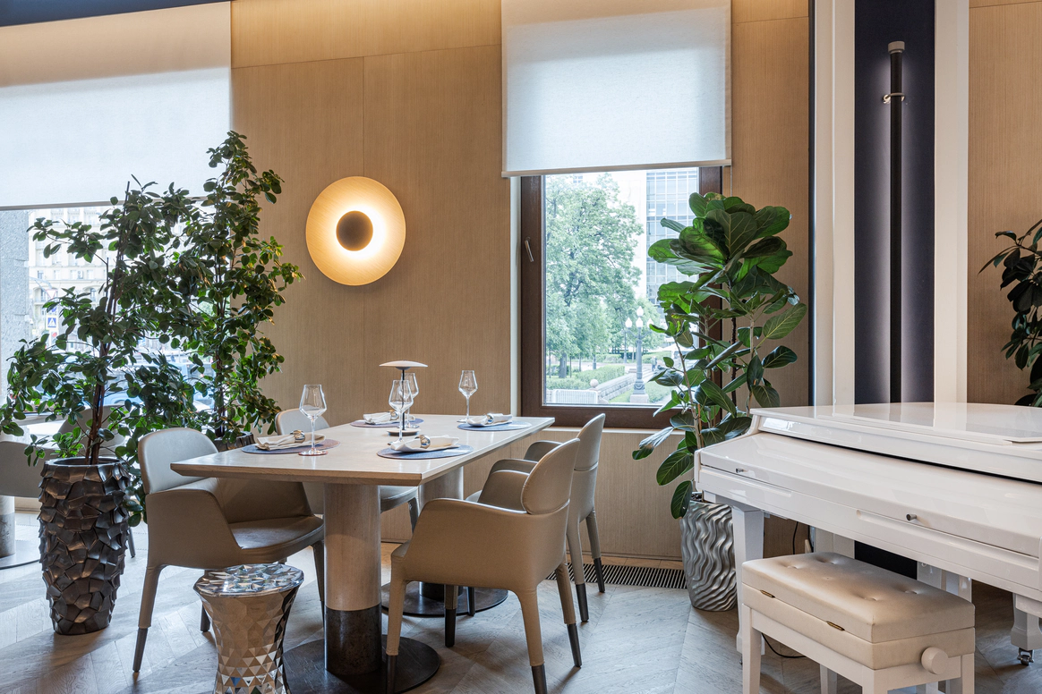 Панорамный ресторан Yura расположен на пересечении Страстного бульвара с Тверской улицей. Это элегантный ресторан современной авторской кухни в самом центре города, кухню которого возглавляет шеф-повар Ирина Цынтарюк. Принцип «с огорода на стол» лежит в основе всех блюд. Мы максимально поддерживаем наших фермеров, которые поставляют лучшие продукты — все самое свежее и сезонное. Следуя правилам высокой гастрономии, Ирина каждый сезон открывает обновленным меню, в основе которого авторские рецепты, актуальные идеи и современные комбинации вкусов. Дизайн интерьера создан Екатериной Вальц. Он продолжает заданную отелем идею реторофутуризма, но мягко и ненавязчиво. Панорамные окна, заливающие залы светом, пастельные оттенки, теплое дерево и живая зелень уравновесили «холодные» фактуры, сделав интерьер модным и легким. Ресторан является частью пятизвёздочного дизайн-отеля StandART и соответствует высоким стандартам качества отеля. Ежегодно Yura становится финалистом и победителем свадебных премии как лучшая площадка для камерных свадеб или мероприятий в отеле.